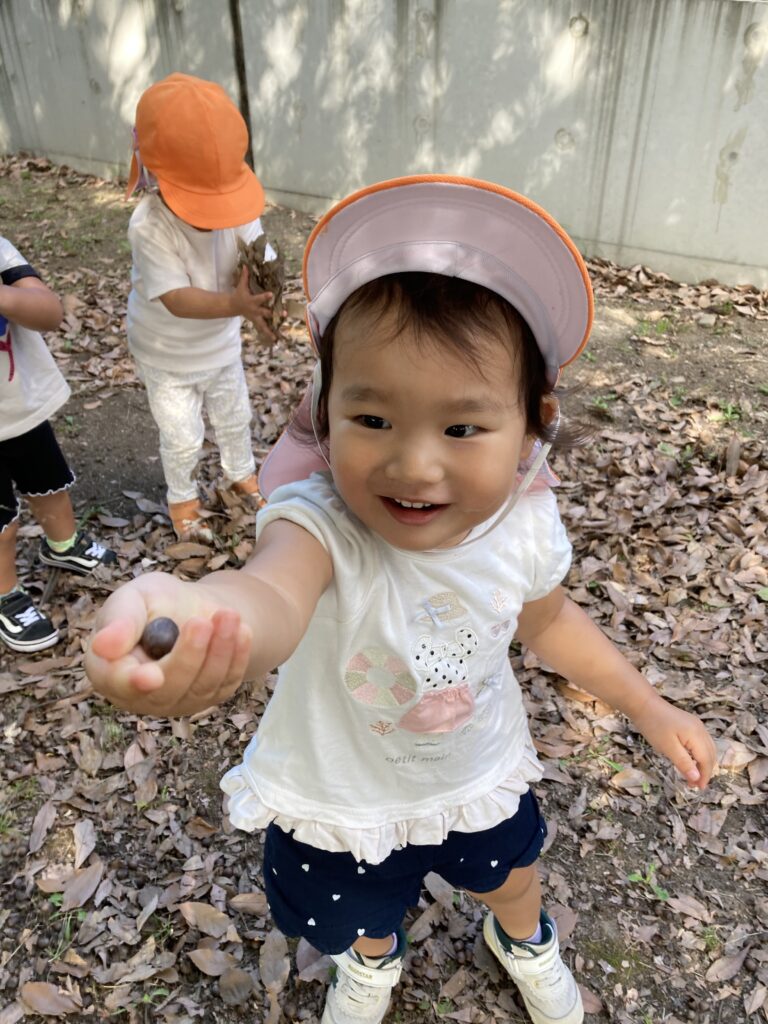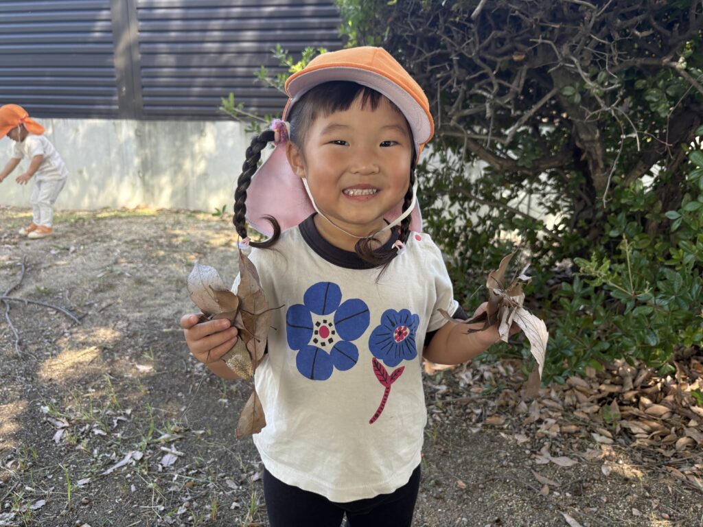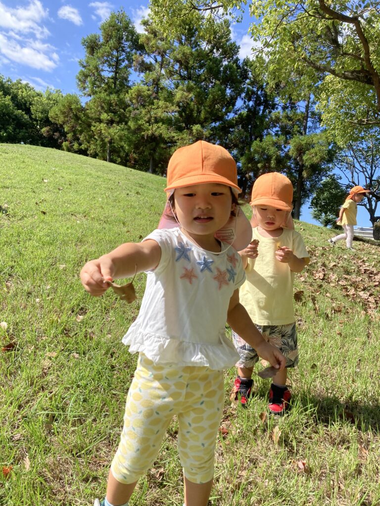 みんなでおいかけっこをしたり、落葉拾いをしたり、まだ日中は暑いですが、秋の公園遊びを楽しんだうさぎ組さんでした。