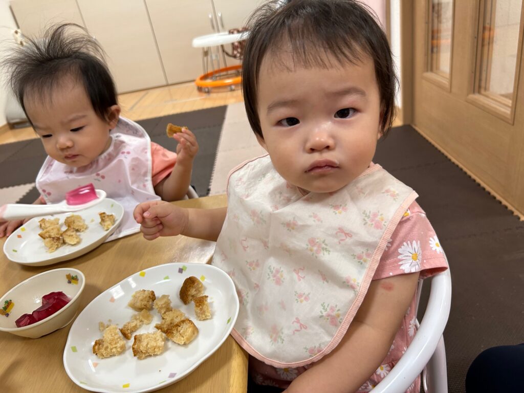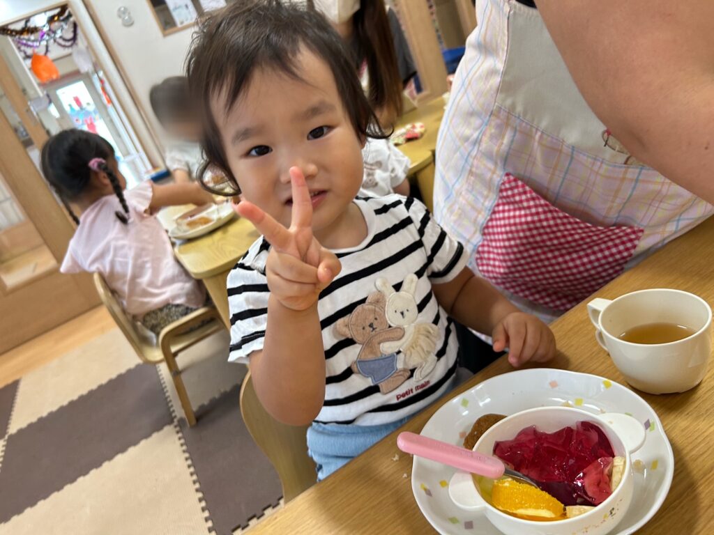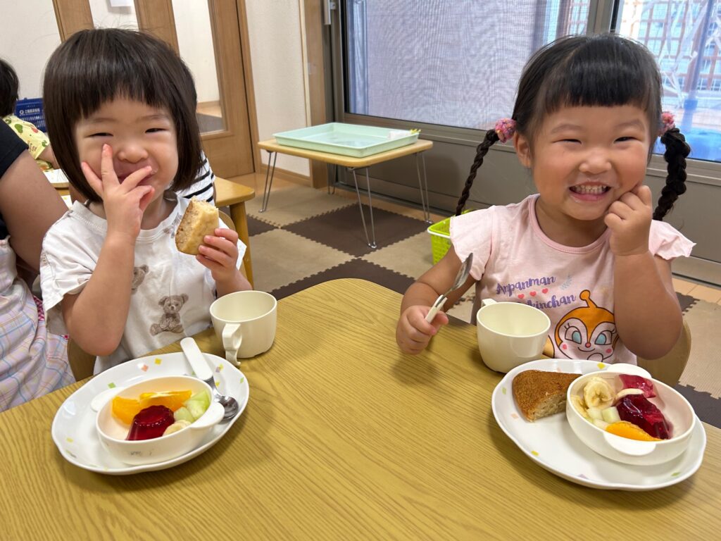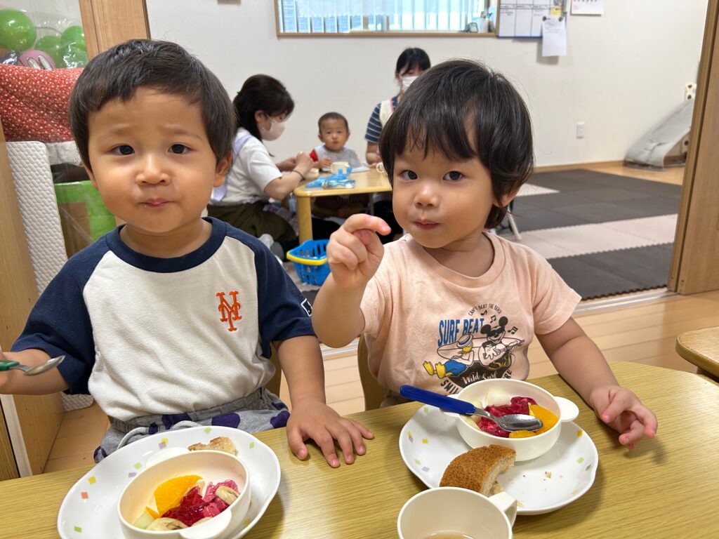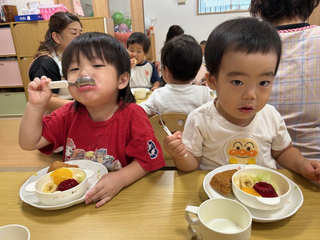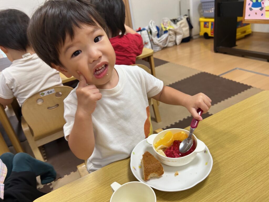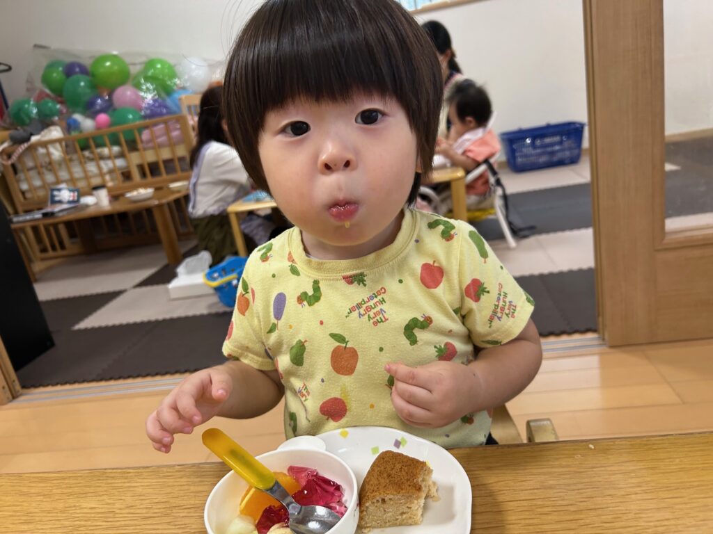 みんなで、たんたんたんたん誕生日~♫と歌ってお祝いをしたり、お誕生日メニューのおやつを食べてとても楽しんでいた子どもたちでした。