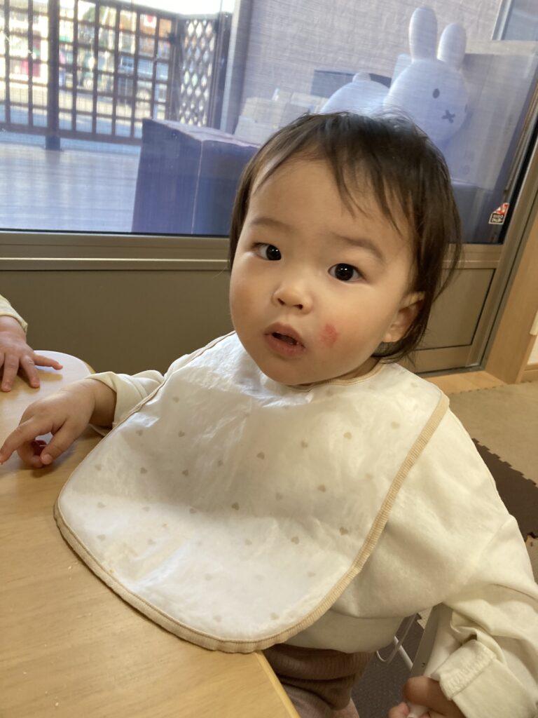 落ち葉がたくさん落ちていたので、葉っぱのシャワーをすると大喜びして「わぁ~!」と真似して葉っぱをヒラヒラさせていました。
