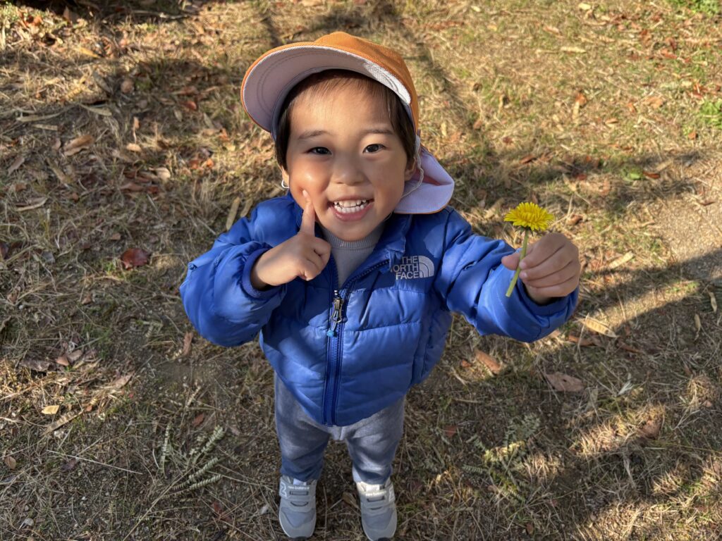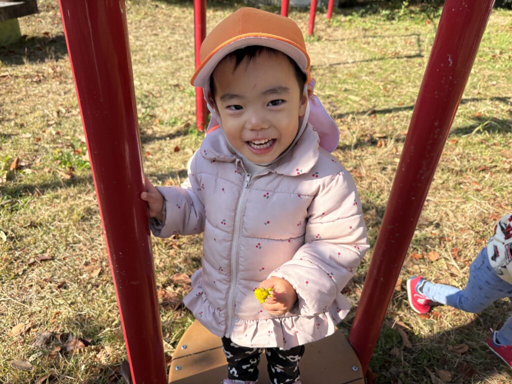 遊具で遊んだり、たんぽぽや落ち葉拾いをしたりして楽しんでいました。