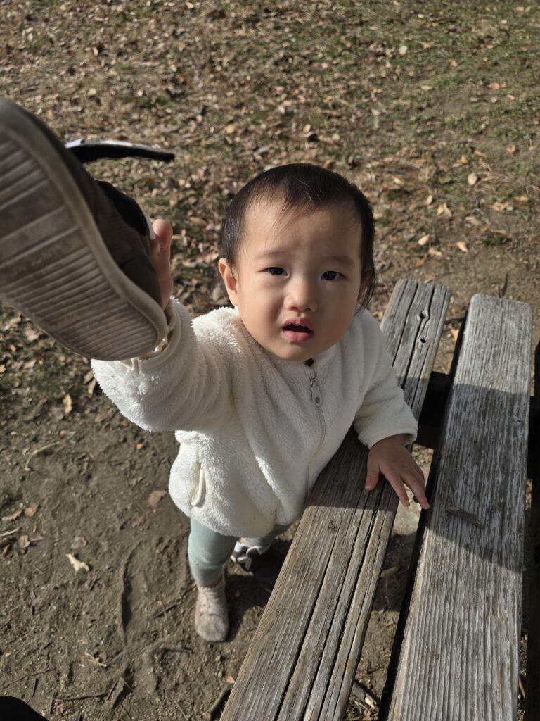 靴を履いて歩くことに慣れてきたようで「歩きたい!」という気持ちが大きくなってきて、表情や行動にも表れるようになってきました。