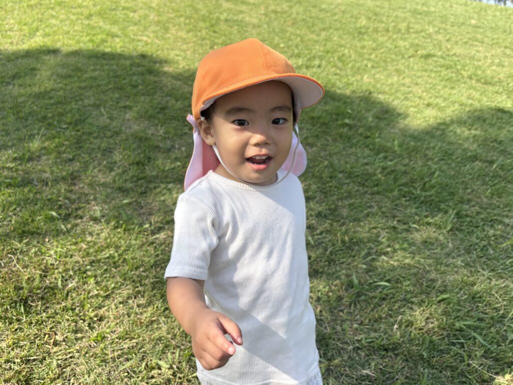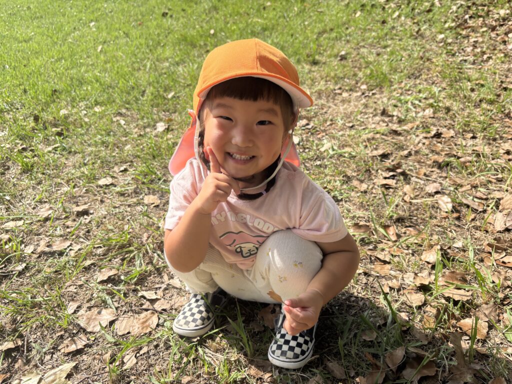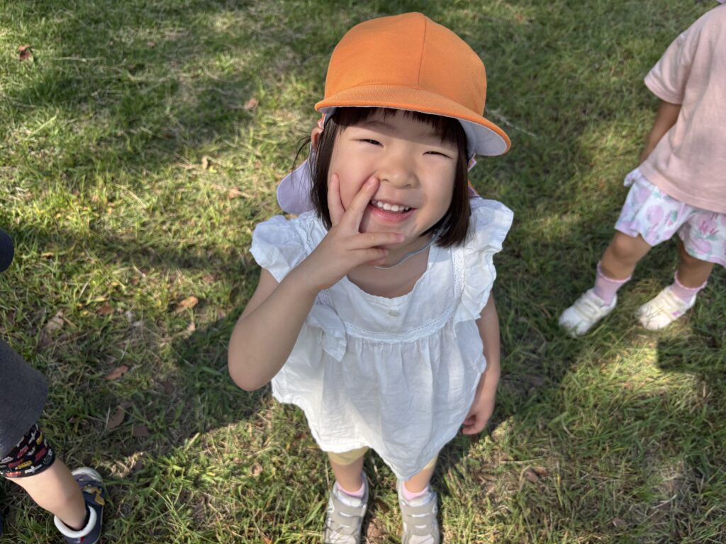 「よーいドンしよう!」とお友だちを誘い、みんなで仲良く手を繋ぎながら丘の登り下りを楽しんでいました。