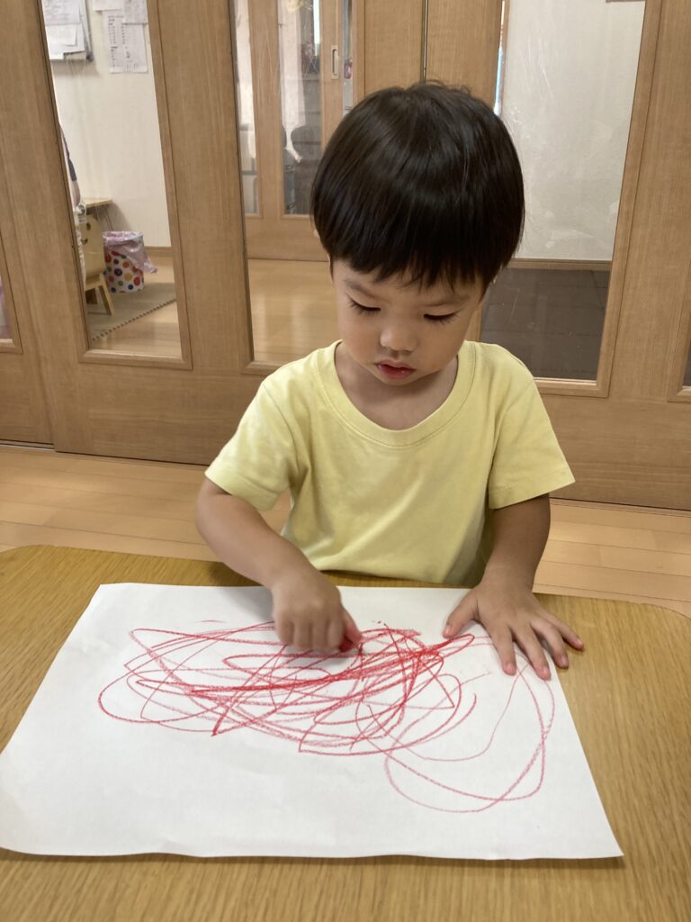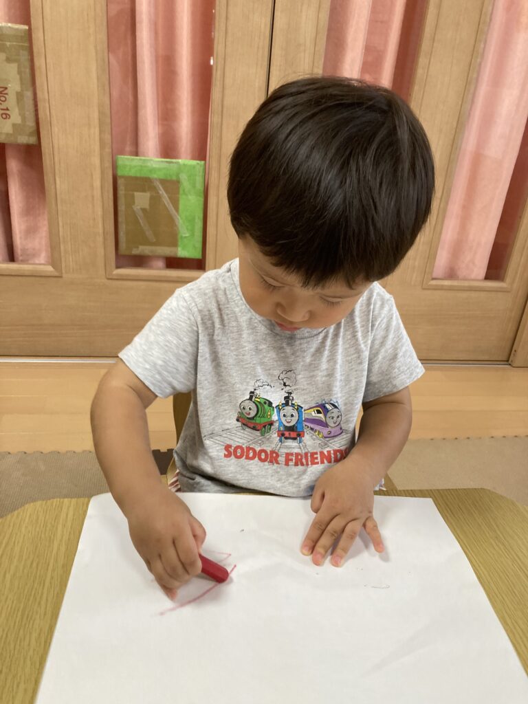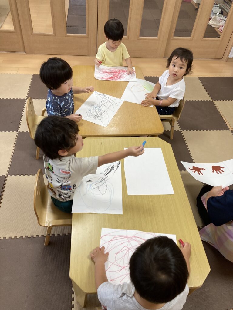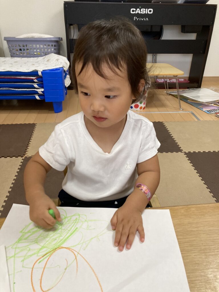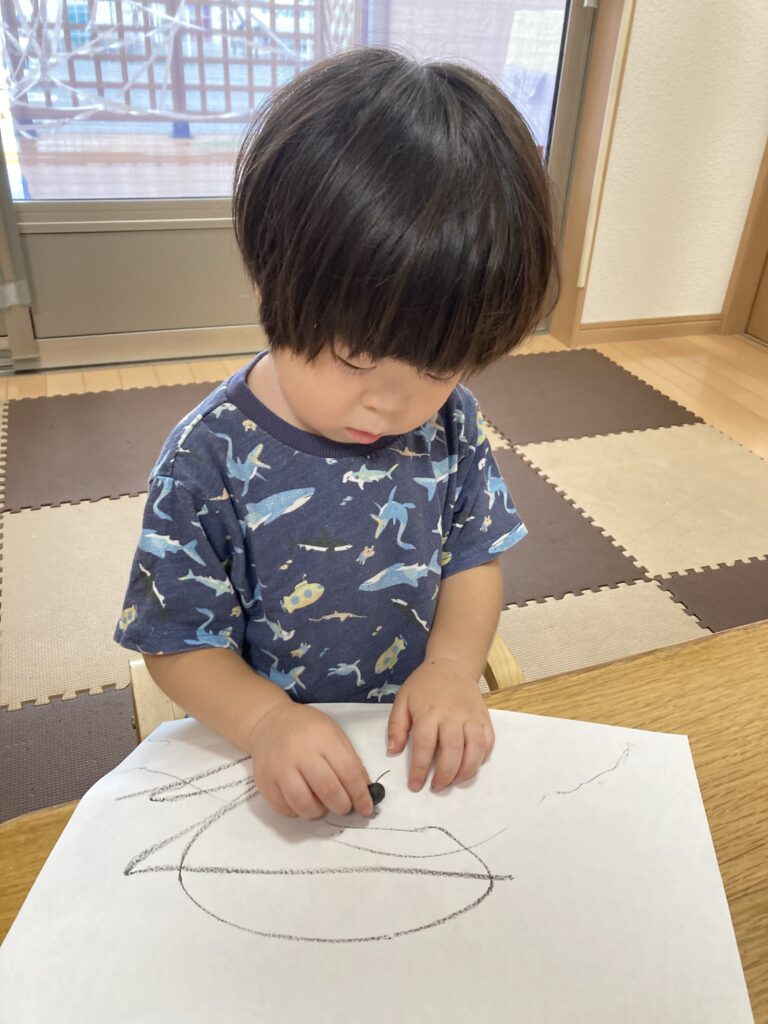 土曜日のハロウィン祭の練習をしました。ニコニコで楽しそうに踊っている姿を見て土曜日もこんな姿を見てもらえたら良いなと思いました。練習のあとはお絵描きをしました。