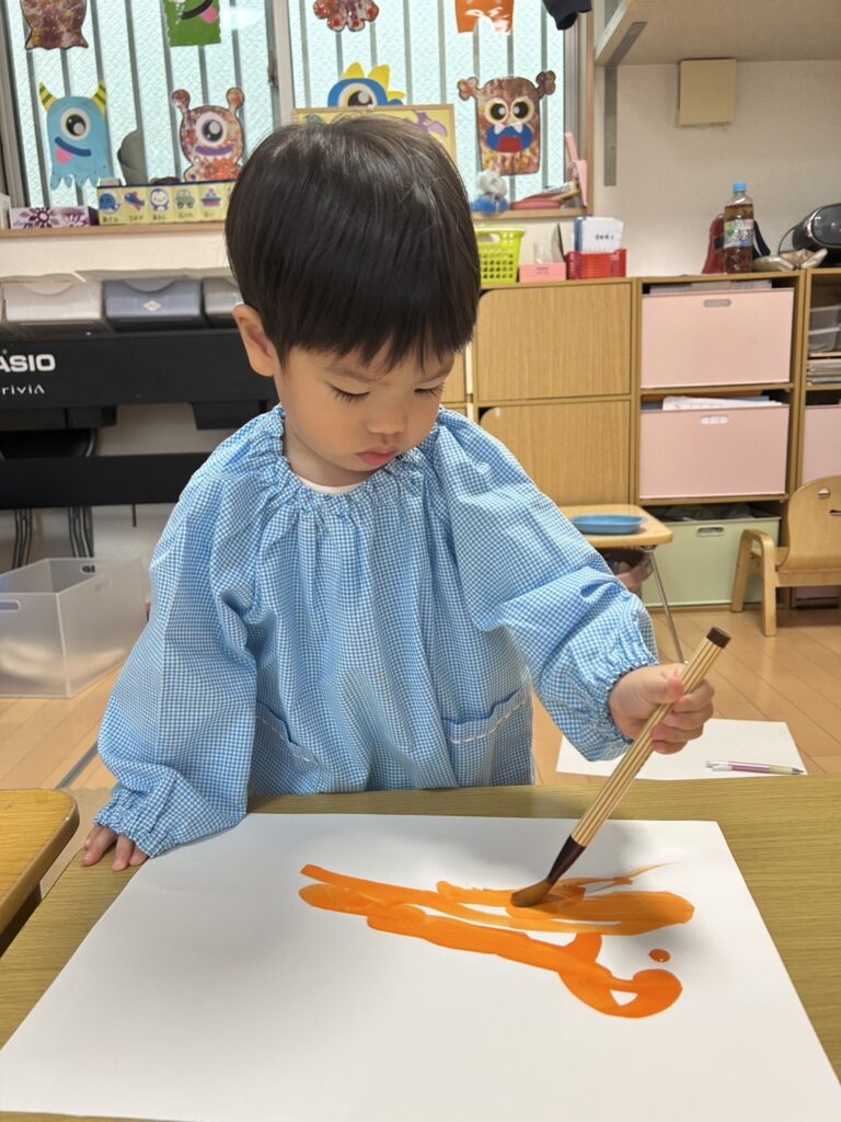 初めて筆を使って色塗りをしましたが、みんなとっても上手に出来ました。