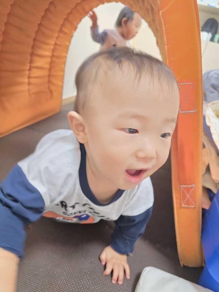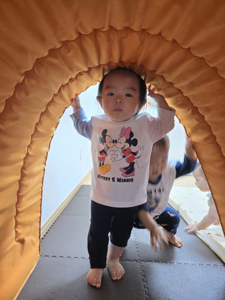 最初はトンネルを警戒しているようでしたが、遊び始めると興味を示し上手にくぐることができていました!