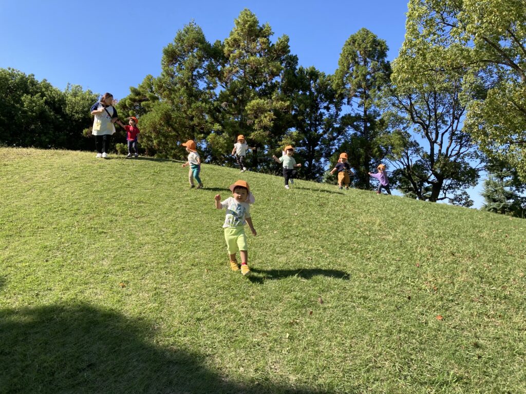 今日は、金岡公園に行きました。昨日とは打って変わって、とてもいい天気で、丘を元気いっぱい走りました!