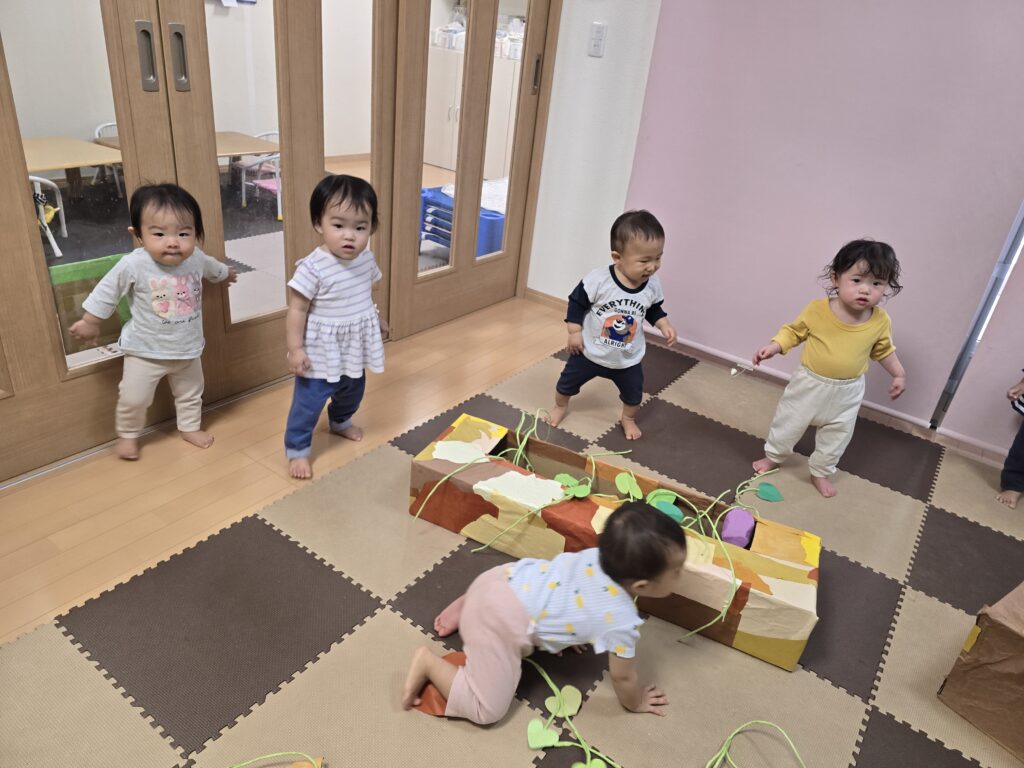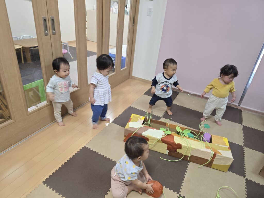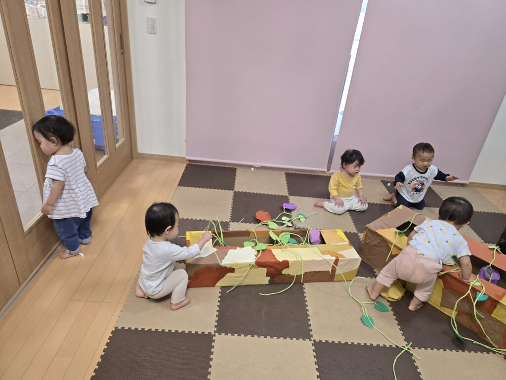 初めは見慣れないものに驚いていましたが、興味津々なお友だちもいて嬉しそうに芋づるを引っ張っていました。