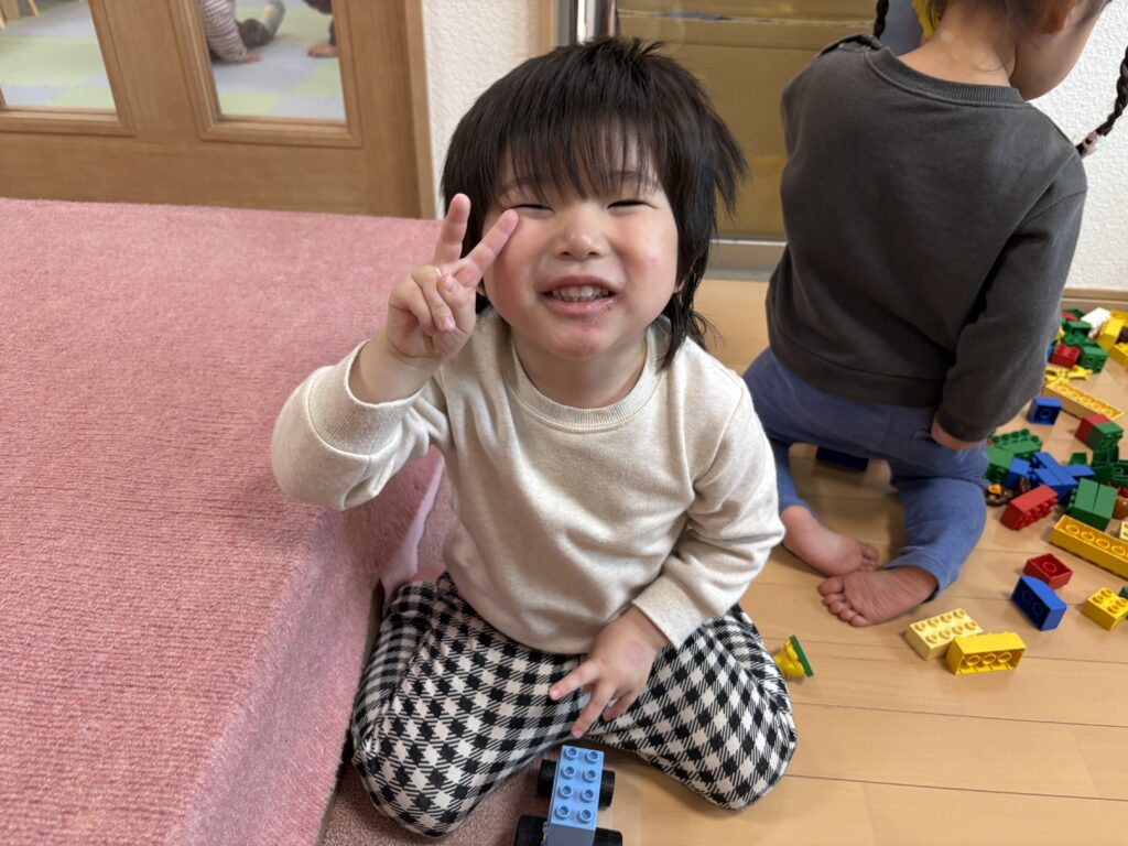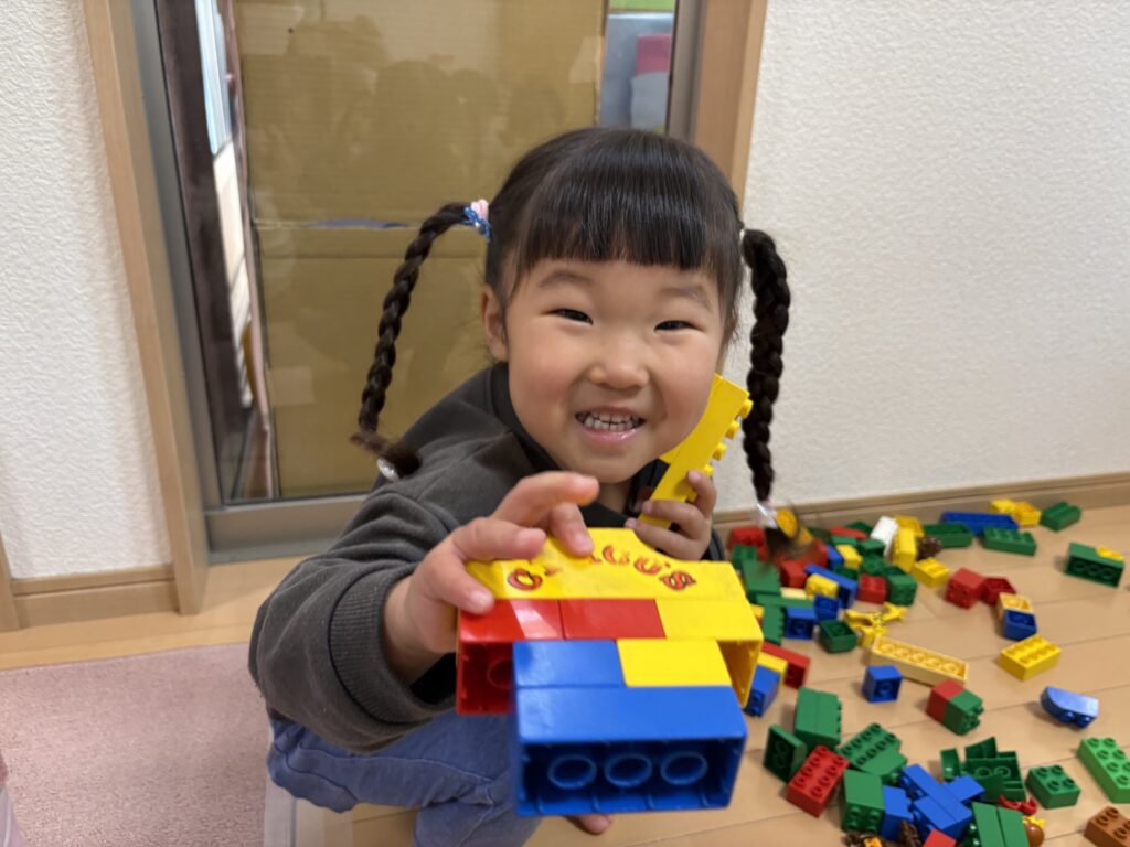 今日はお部屋で発表会の練習をした後、ブロック遊びをしました。