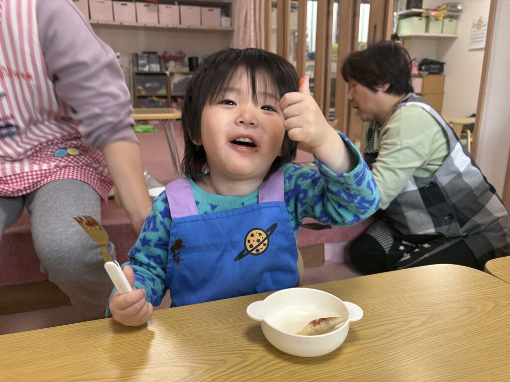 試食では、「めっちゃおいしい!」と嬉しそうに味わっていました。