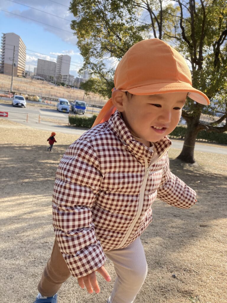 今日も金岡公園へ行ってきました。ニコニコで走り、寒さに負けず、元気いっぱいのうさぎ組さんでした!