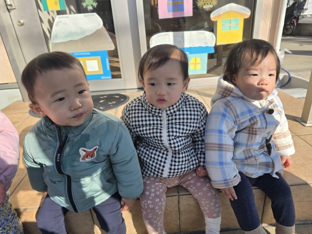 いざ、芝生の上に行くとみんなの真似をして上手にロープの上を歩いていました。