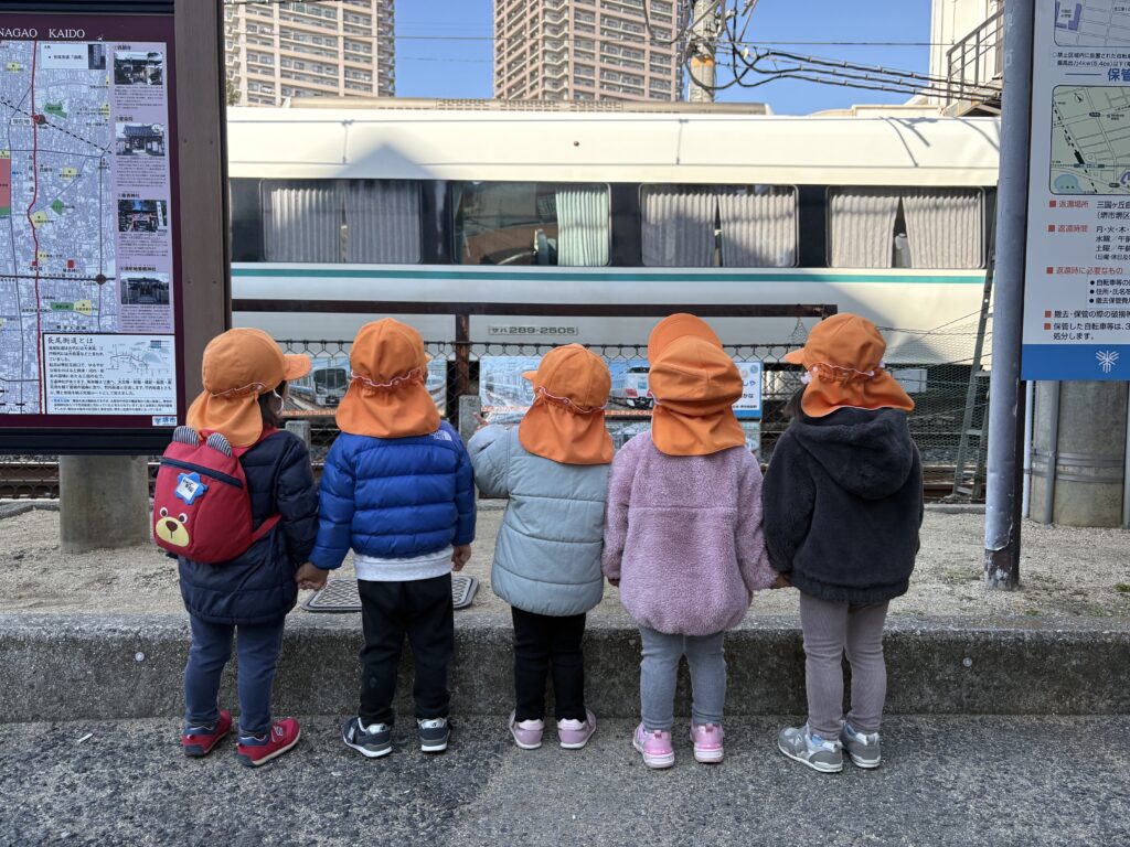 目の前でたくさんの電車を見ることができ、興奮気味に見入っていた子どもたちでした。