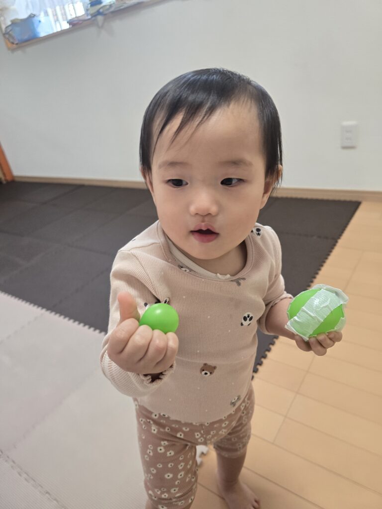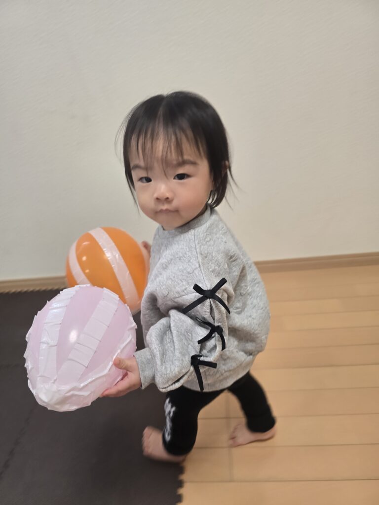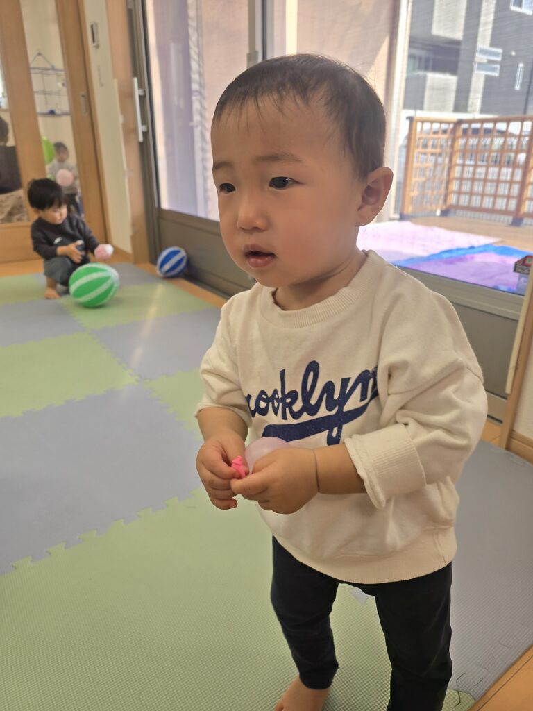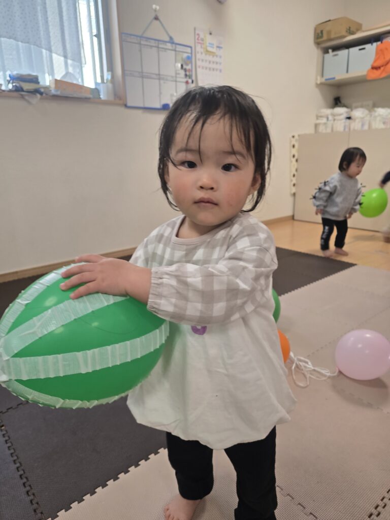 大きい風船や小さい風船、さまざまな形を喜び好きなものを選んで遊んでいました。