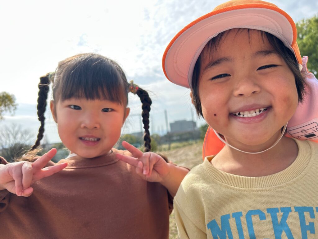 りす組さんと手を繋いで歩いたり、うさぎ組さんと葉っぱで作ったオバケを持って追いかけっこをしたりして一緒に遊んでいました。