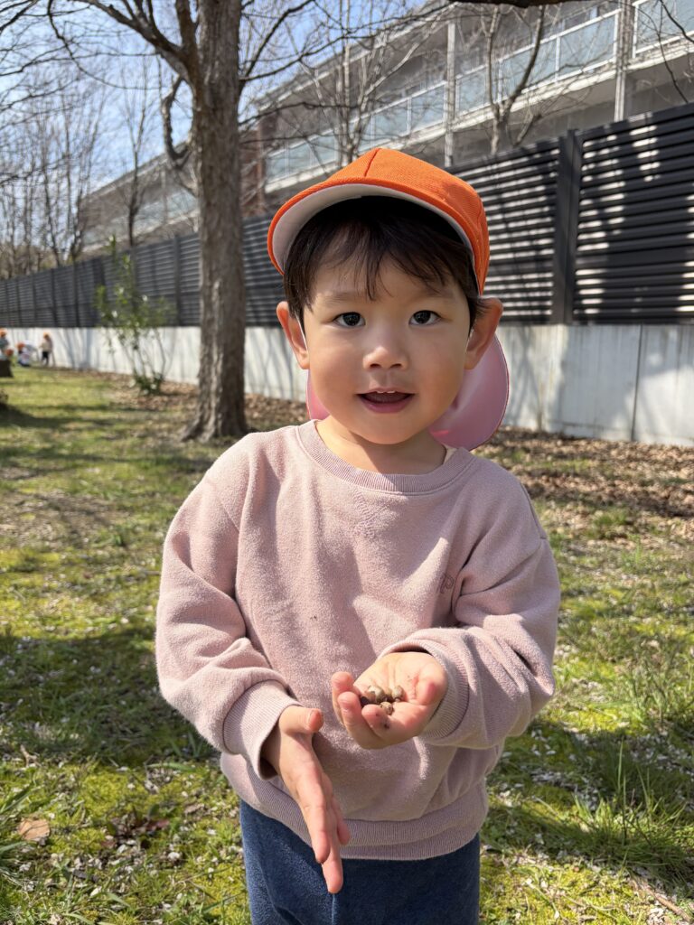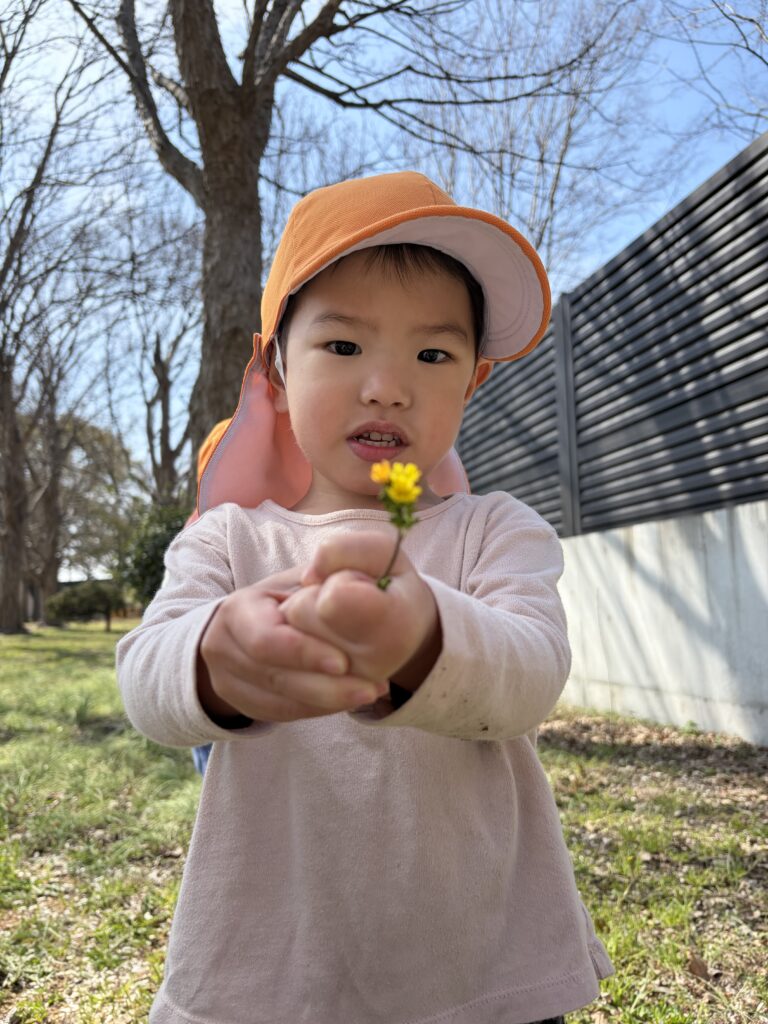 今日は、金岡公園に行きました!たんぽぽが沢山咲いていたり、桜も今にも咲きだしそうな春の公園で、虫探しをしたり、おいかけっこをしたり、元気いっぱい遊びました。