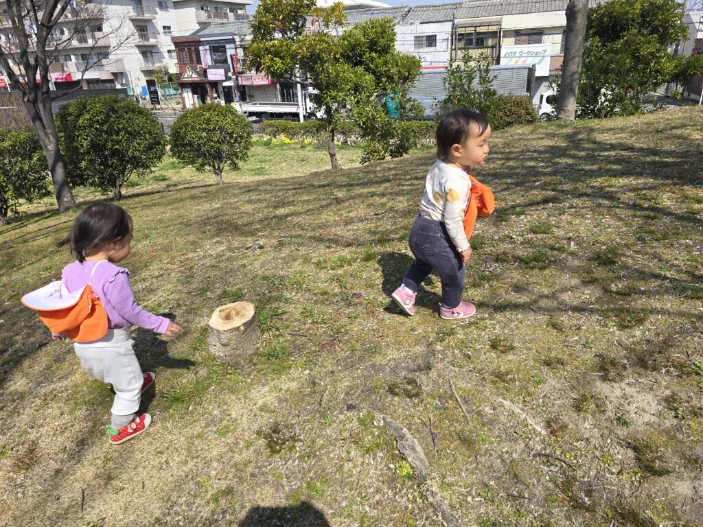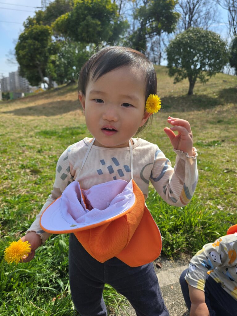 暖かくなってきて綺麗なお花も咲いていて子どもたちも「あ!」と嬉しそうに指差しをしていました。