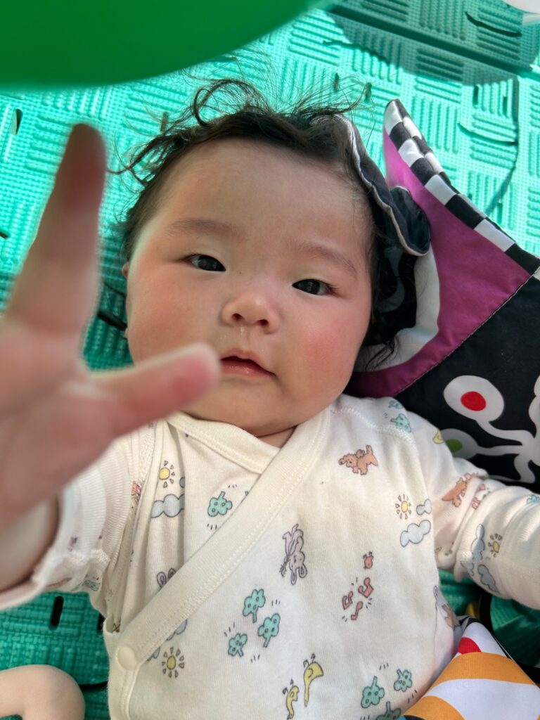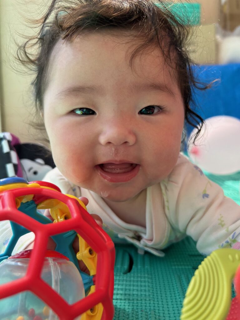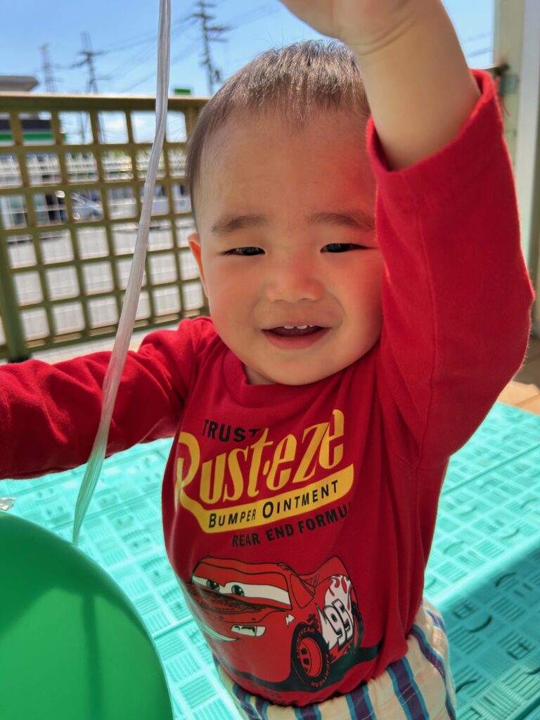 ぽかぽか陽気で気持ちよさそうにしながら、風船やおもちゃで楽しんでいました。