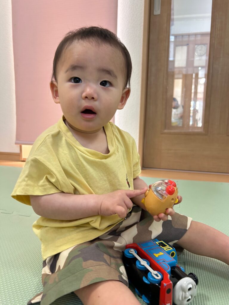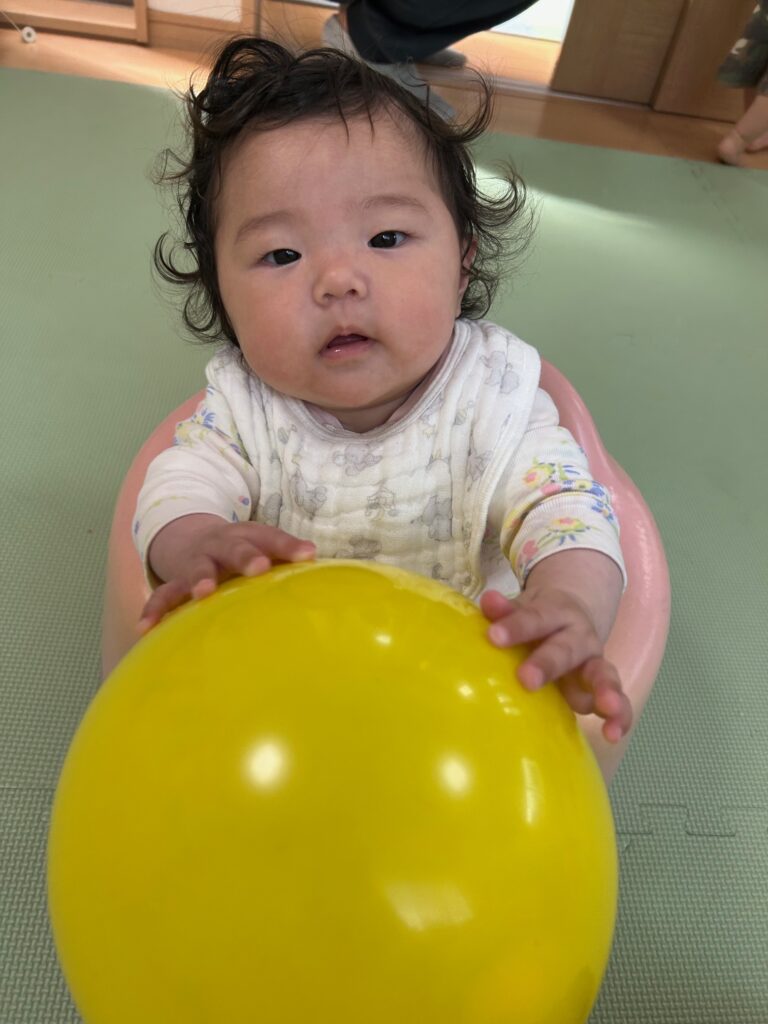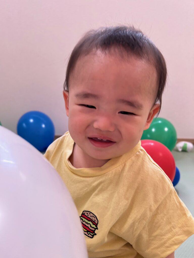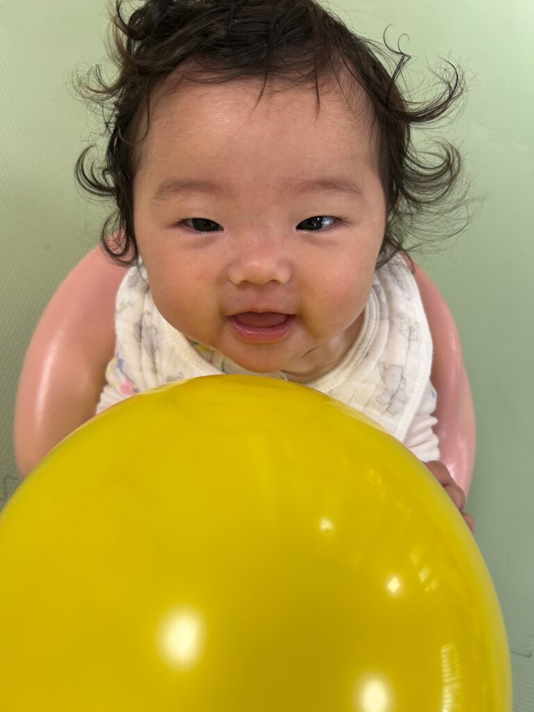 風船を持って感触を味わったり、保育士が飛ばす風船を見上げて