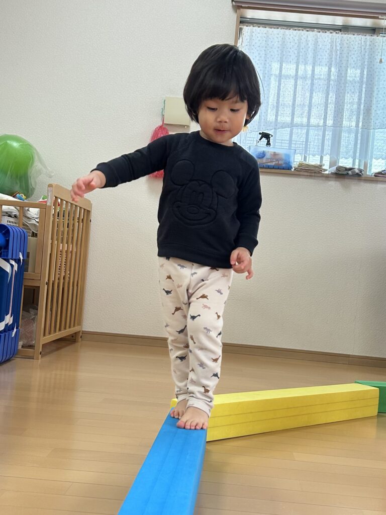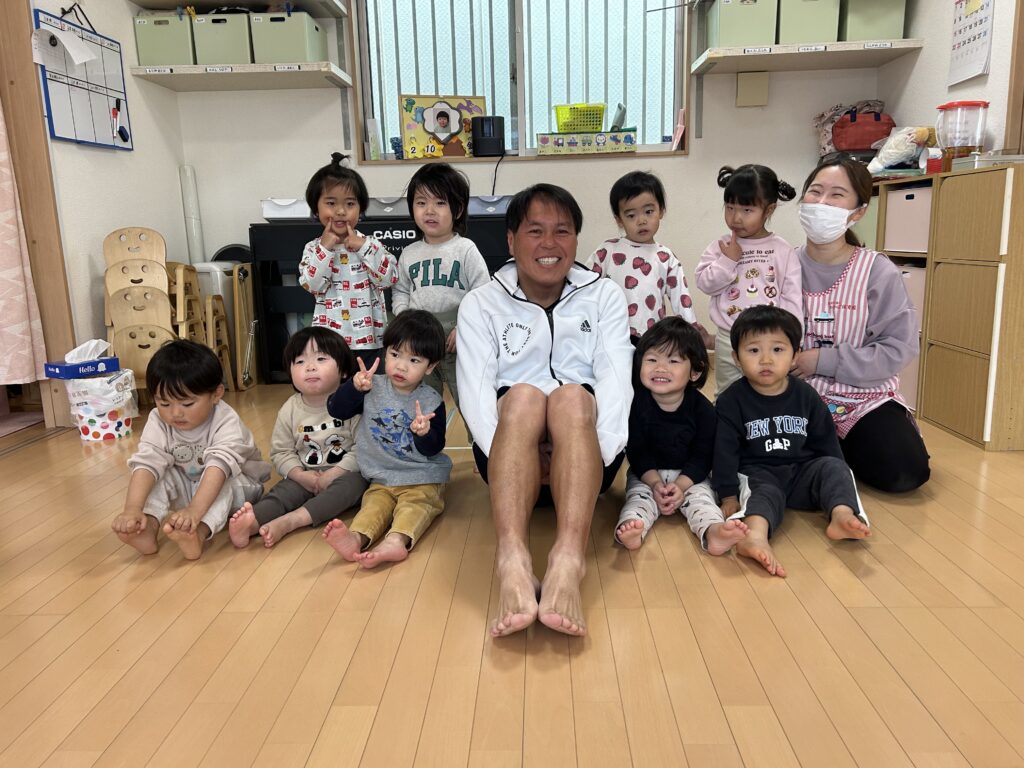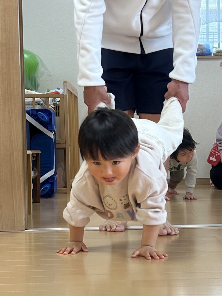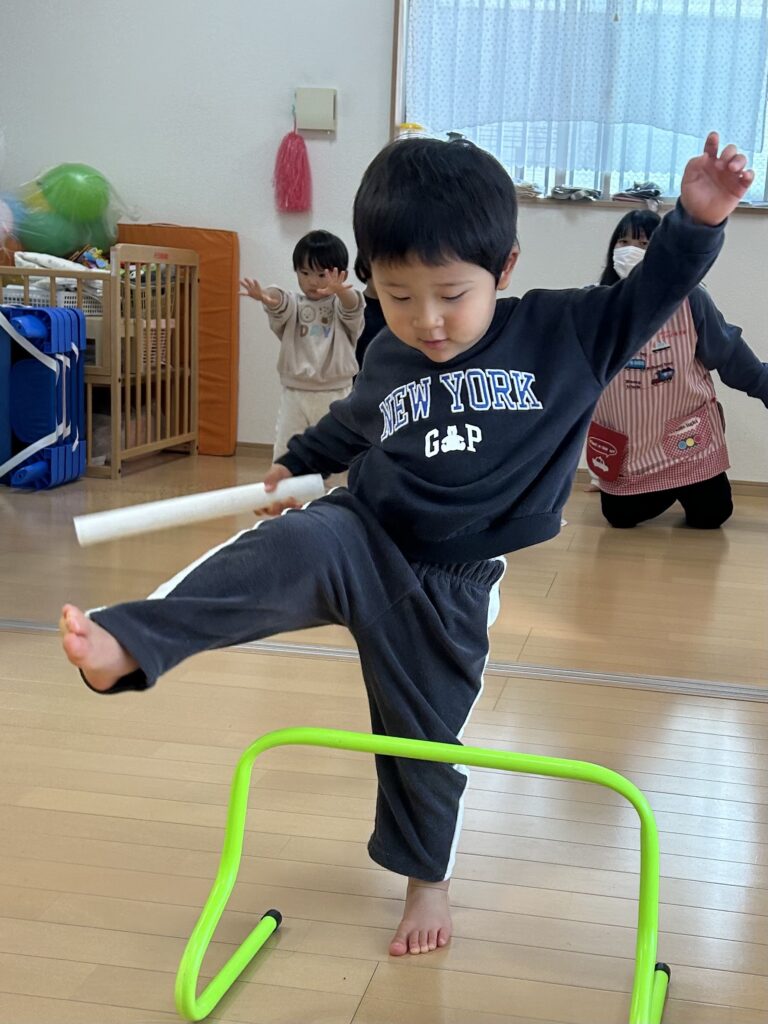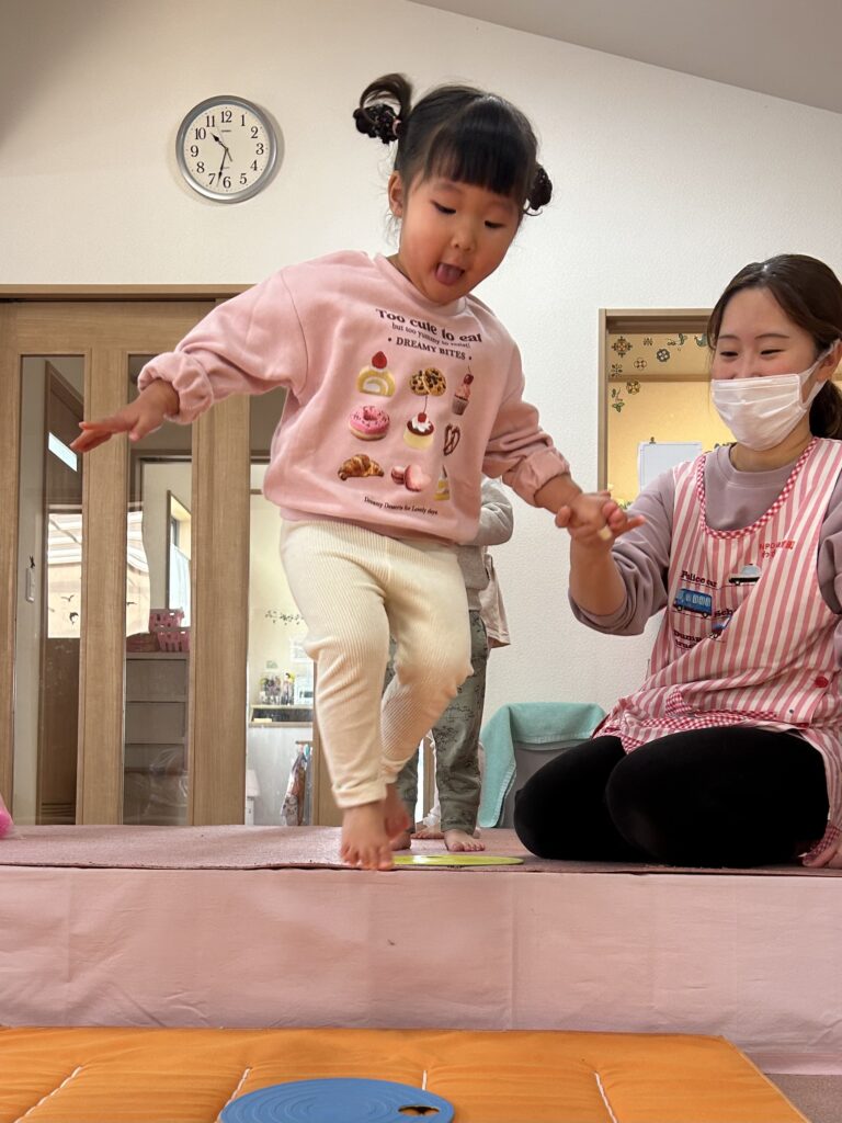 みんなが大好きな体操教室がありました。かけっこ ジャンプ 手押し車色々な運動を頑張りました。
