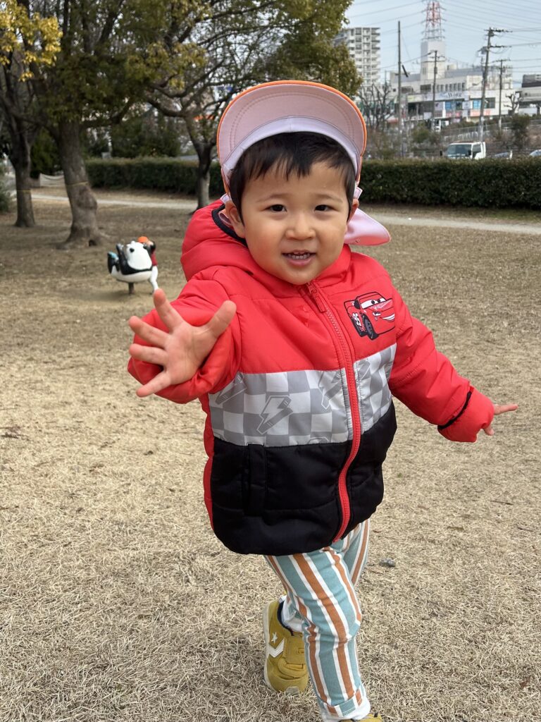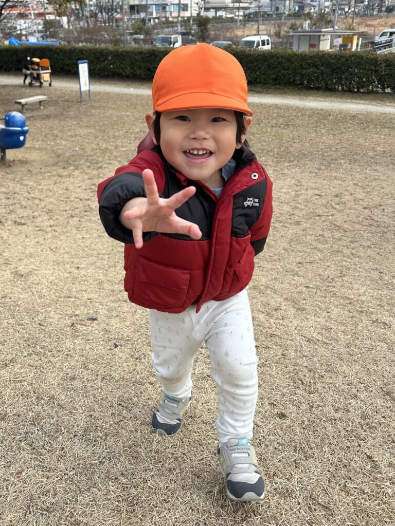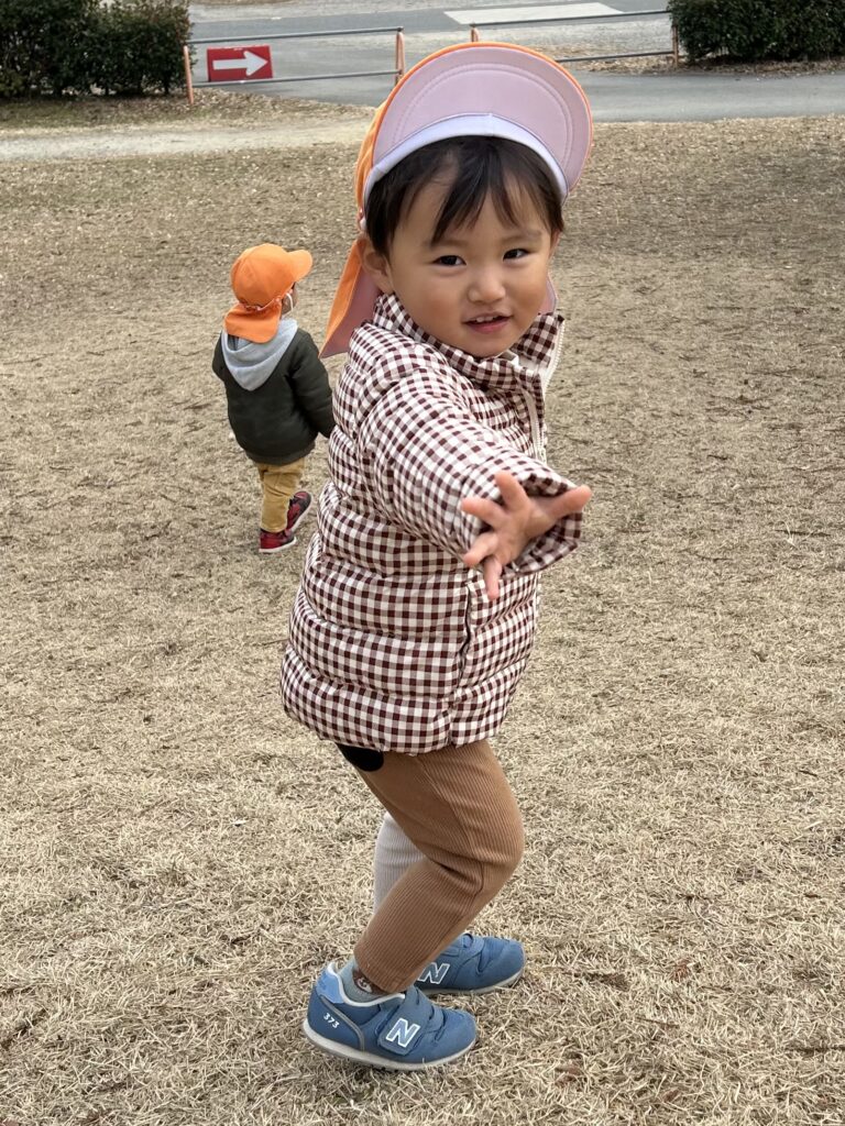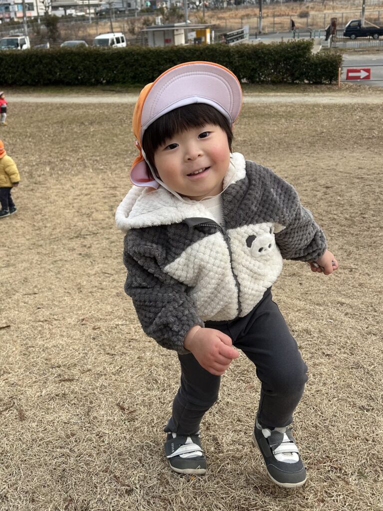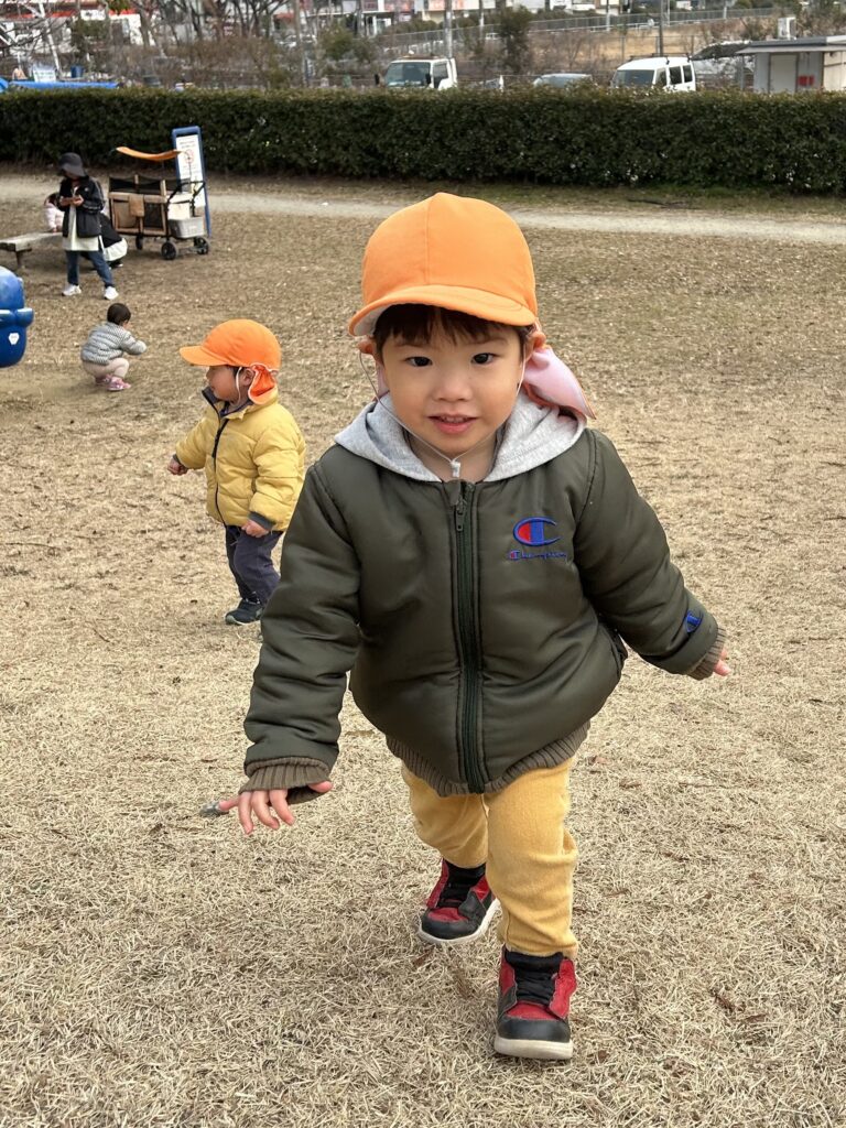 今日も金岡公園へ行きました。元気いっぱい走り回りすごく良い表情の子どもたちです。