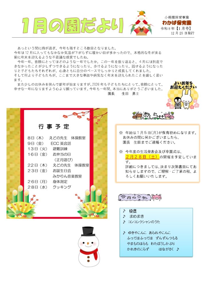 園だよりR8.1月 園だより