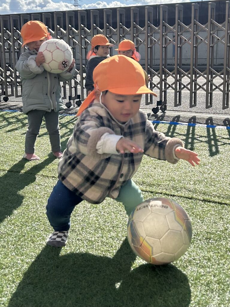 今年初めの体操教室でした。どの子もすごく張り切っていました。今日は風もあり少し寒かったので全身を使った運動を沢山しました。