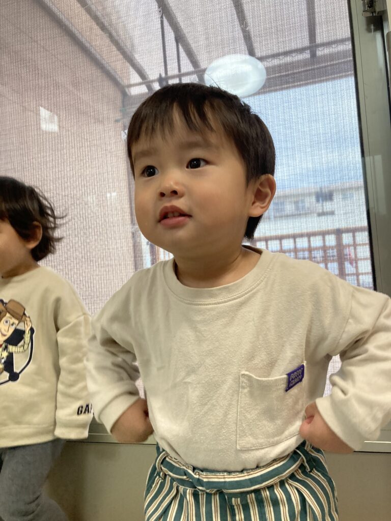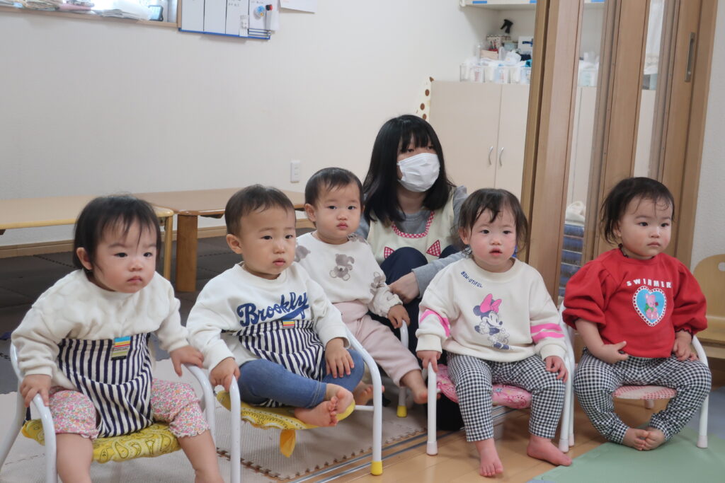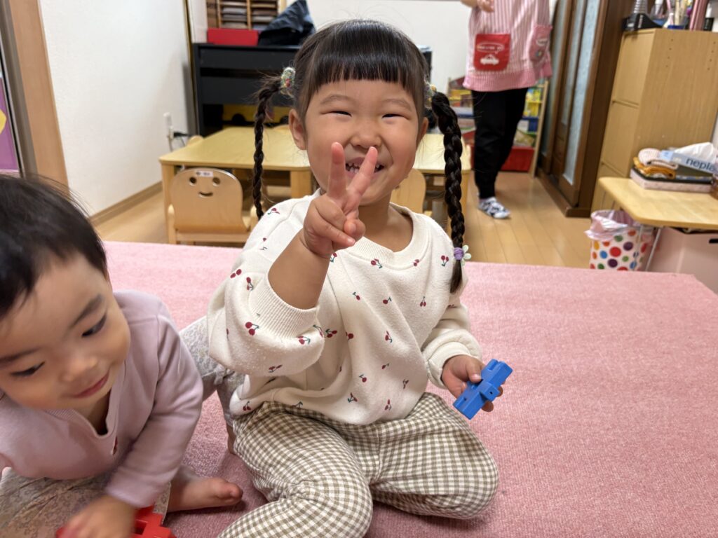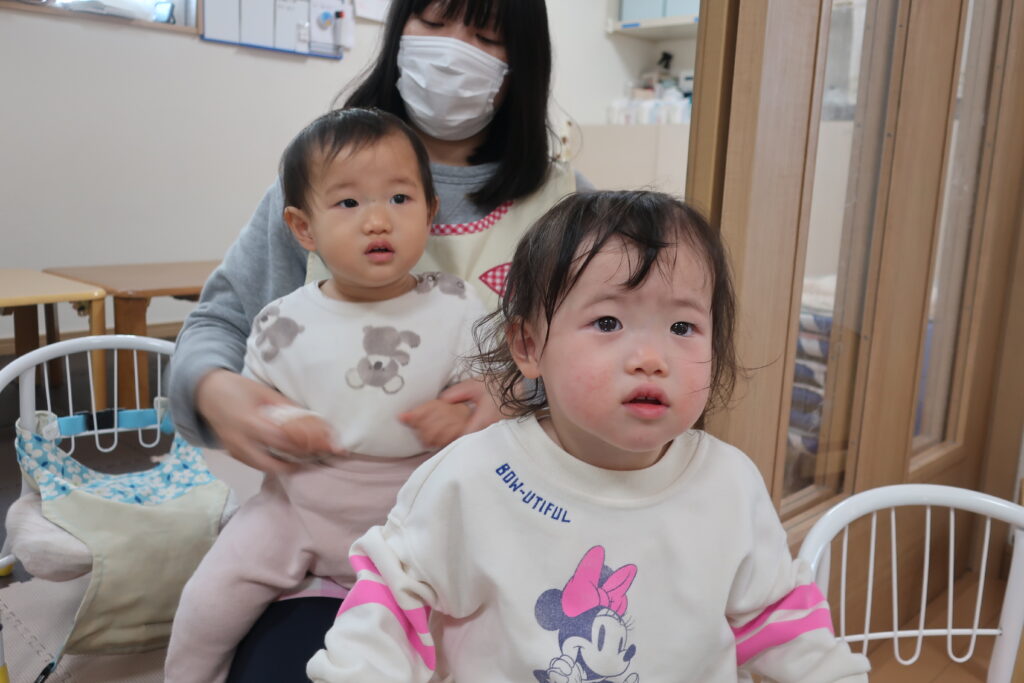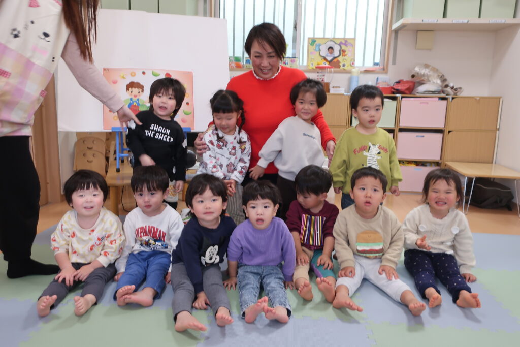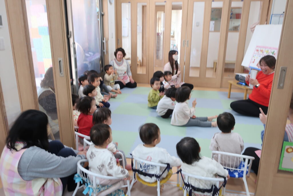 今日は、避難訓練をした後、お歌の練習をしました。元気いっぱい歌った後は、お部屋でトンネルを使い遊び、体をたくさん動かしました。