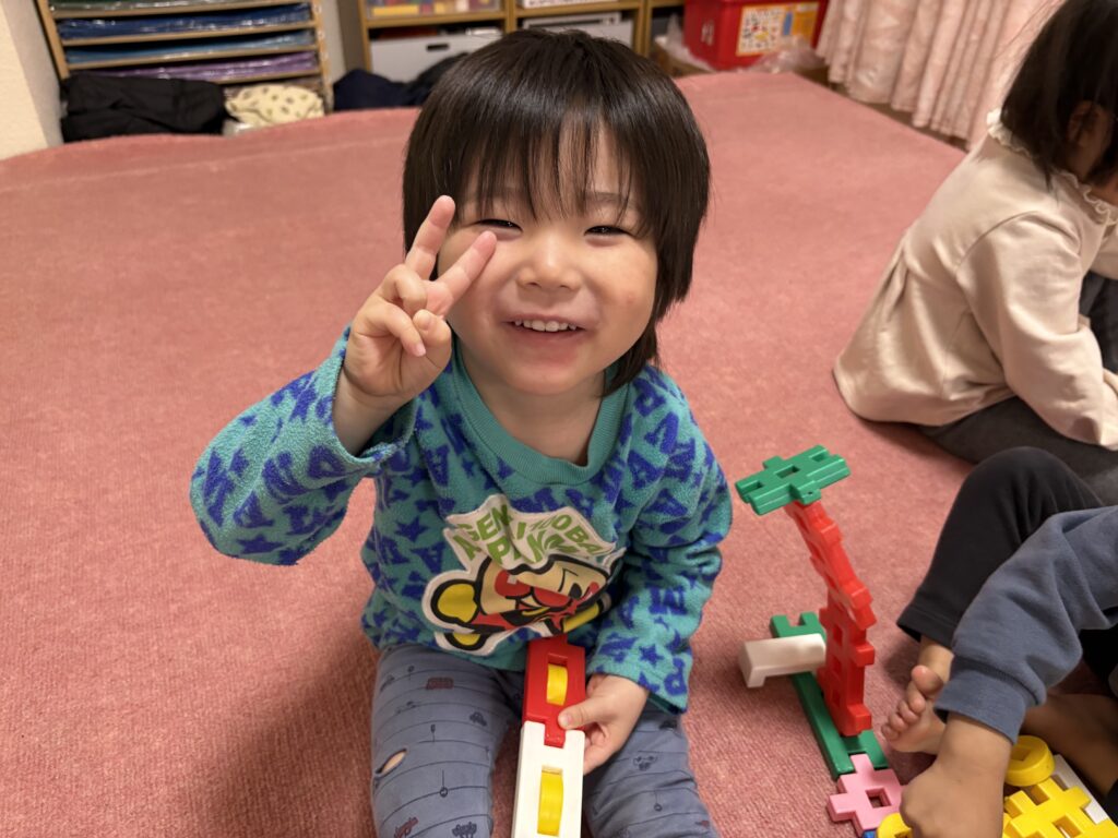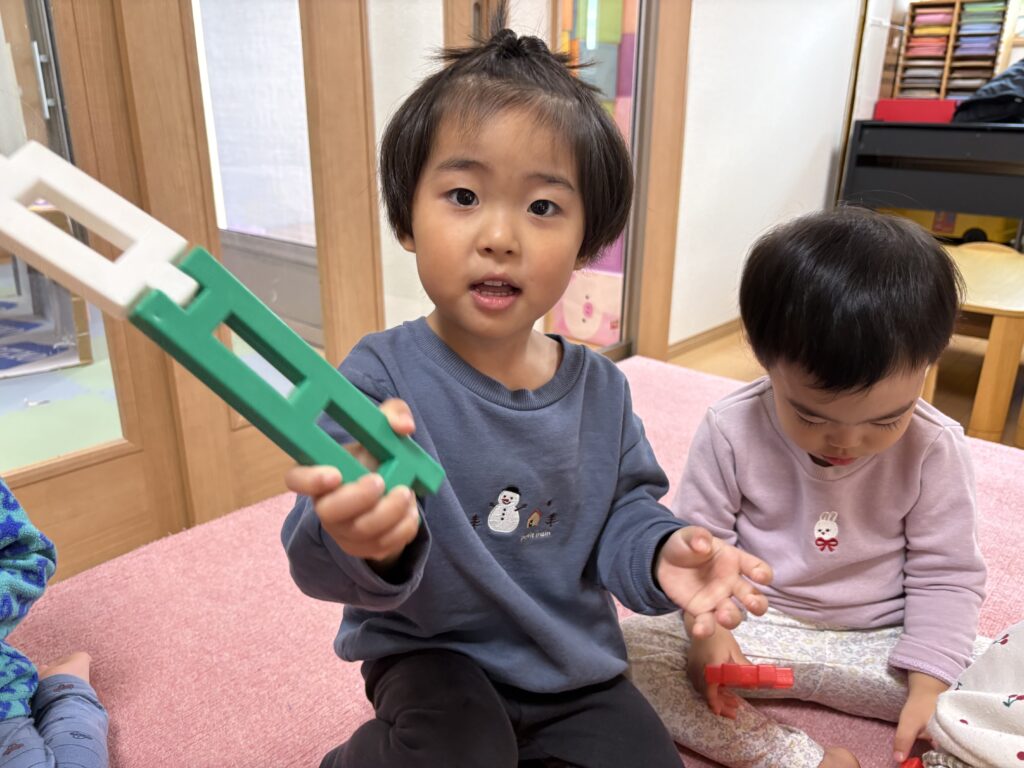 今日はお歌の練習をしてから、ニューブロックで遊びました。