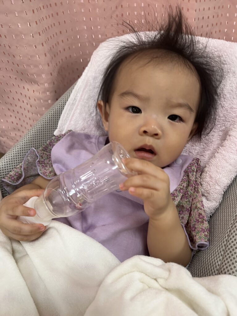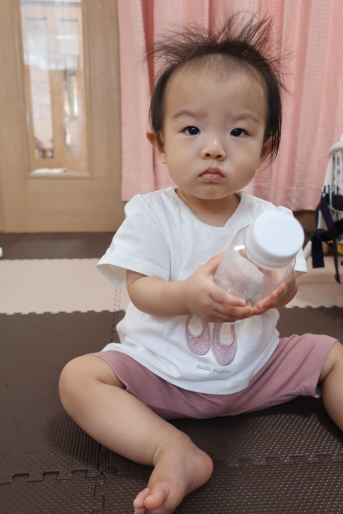 水遊びのおもちゃの動物の名前を言いながら見せにきてくれます。