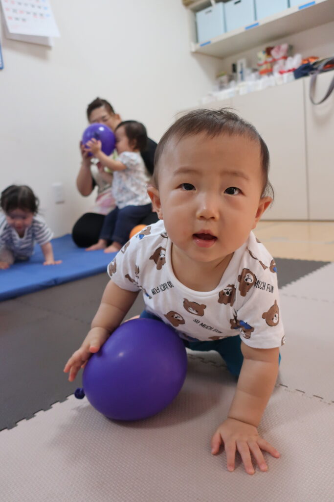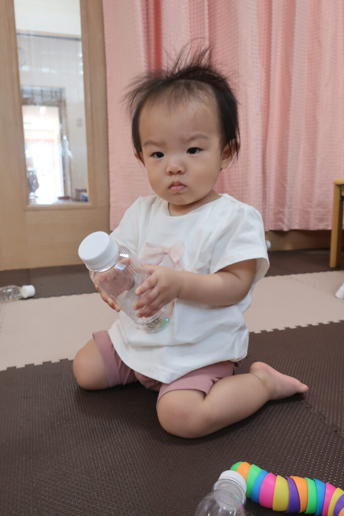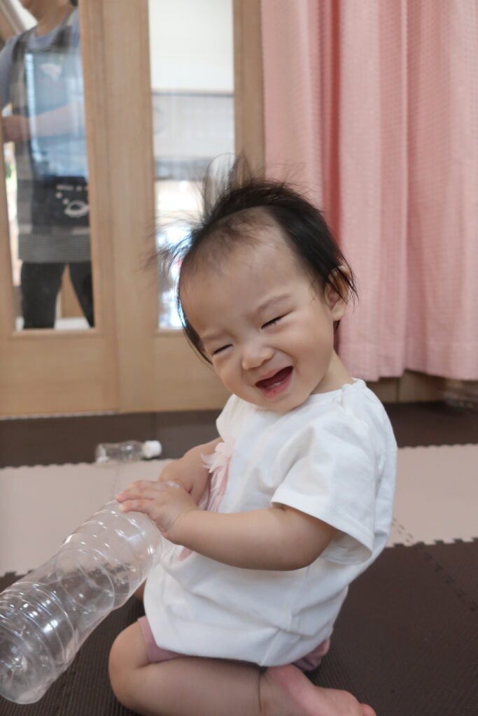 両手に持って振ったり、体を動かしたりして楽しそうにしていました。