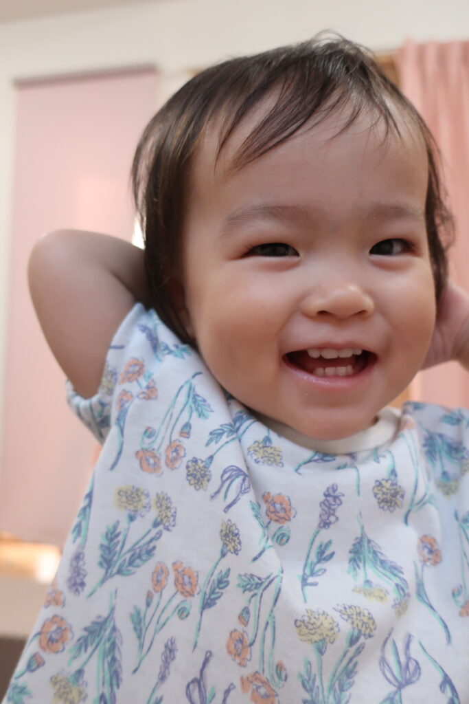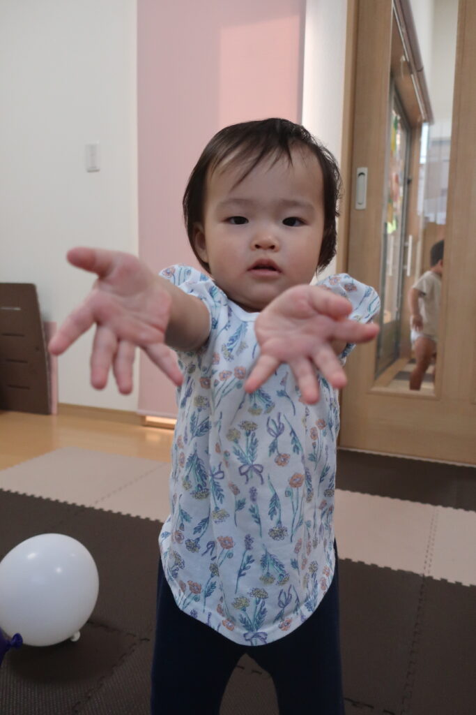 料理に見立ててスープ作りをしたり、リングのおもちゃを何個指にはめられるかチャレンジしたりして楽しんでいました。