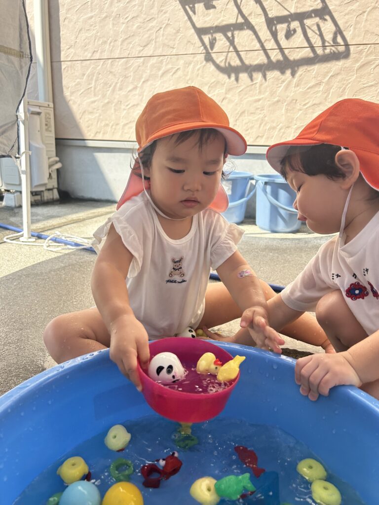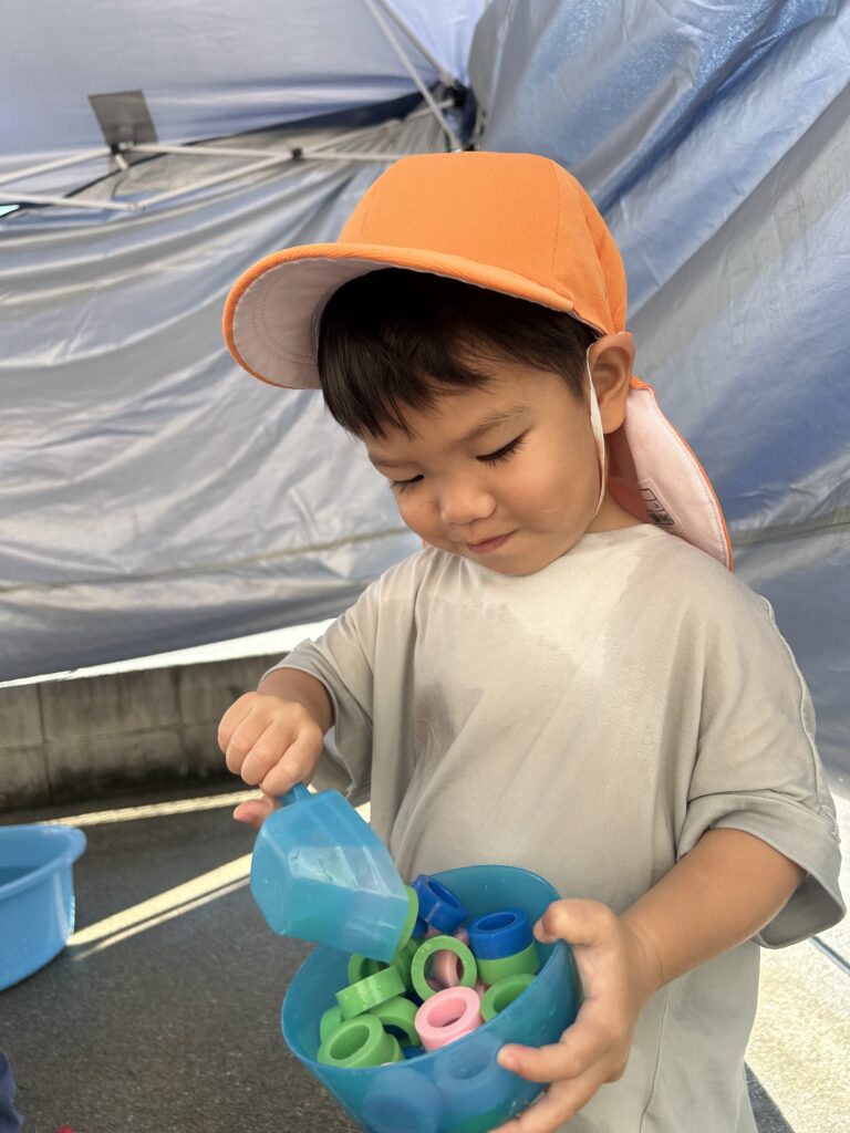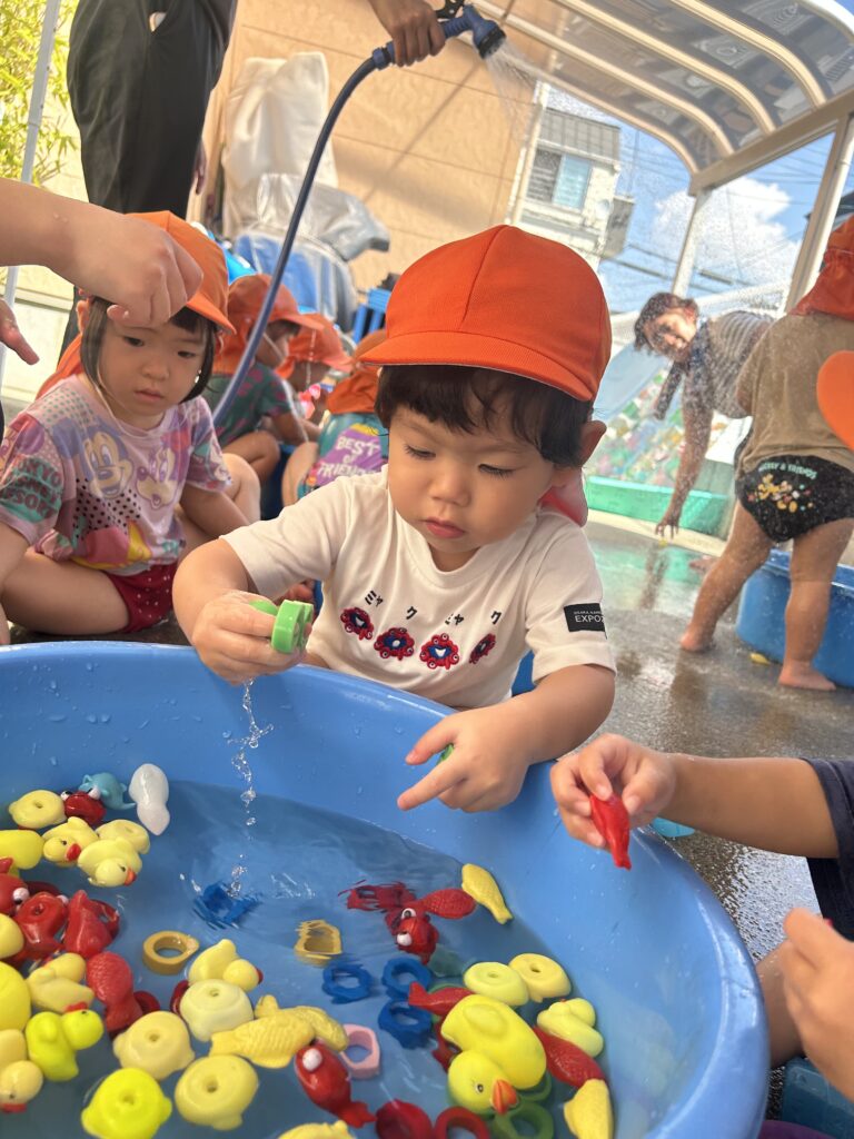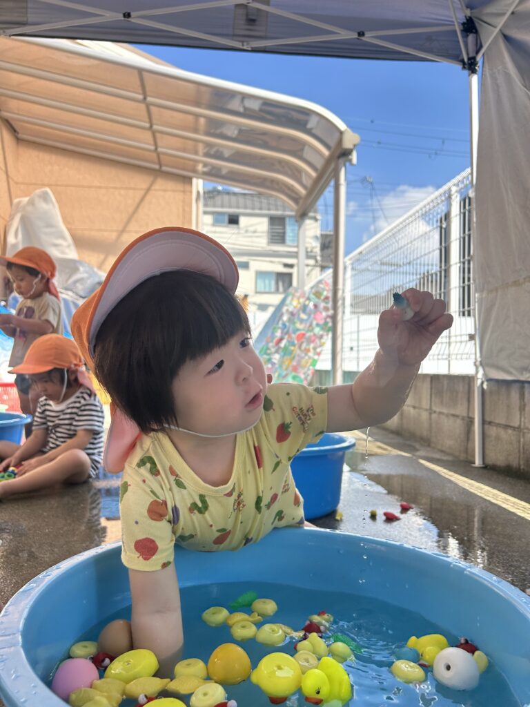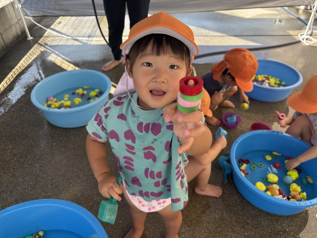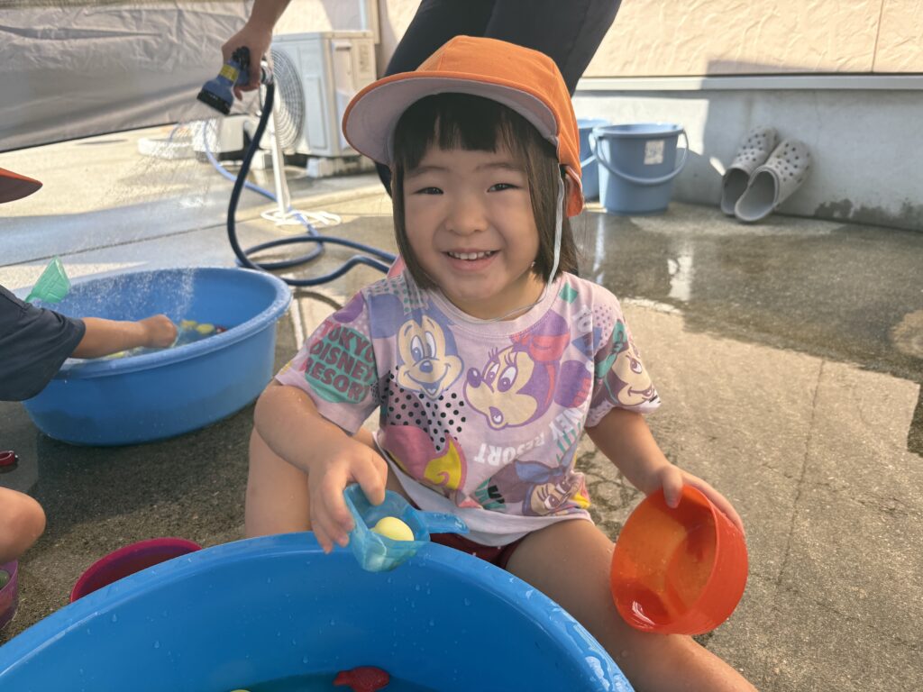 今日も元気なうさぎ組の子どもたちです。水遊びでもすごく楽しそうに遊んでいました。まだまだ暑い日が続くので水遊びを楽しみたいです。