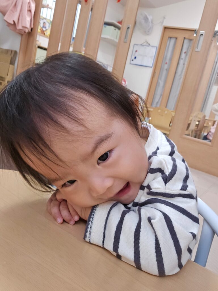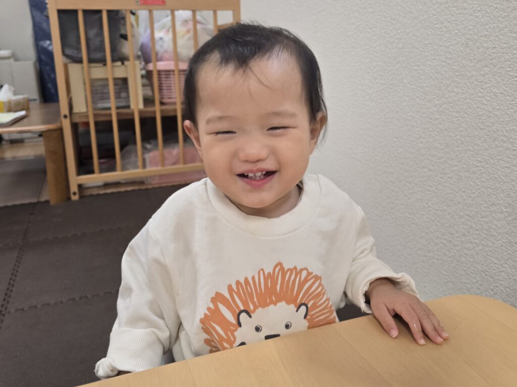 たくさん体を動かしたからか給食が運ばれてくると、早く食べたいと「あー!」と声を出してアピールしていました。
