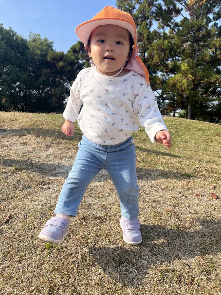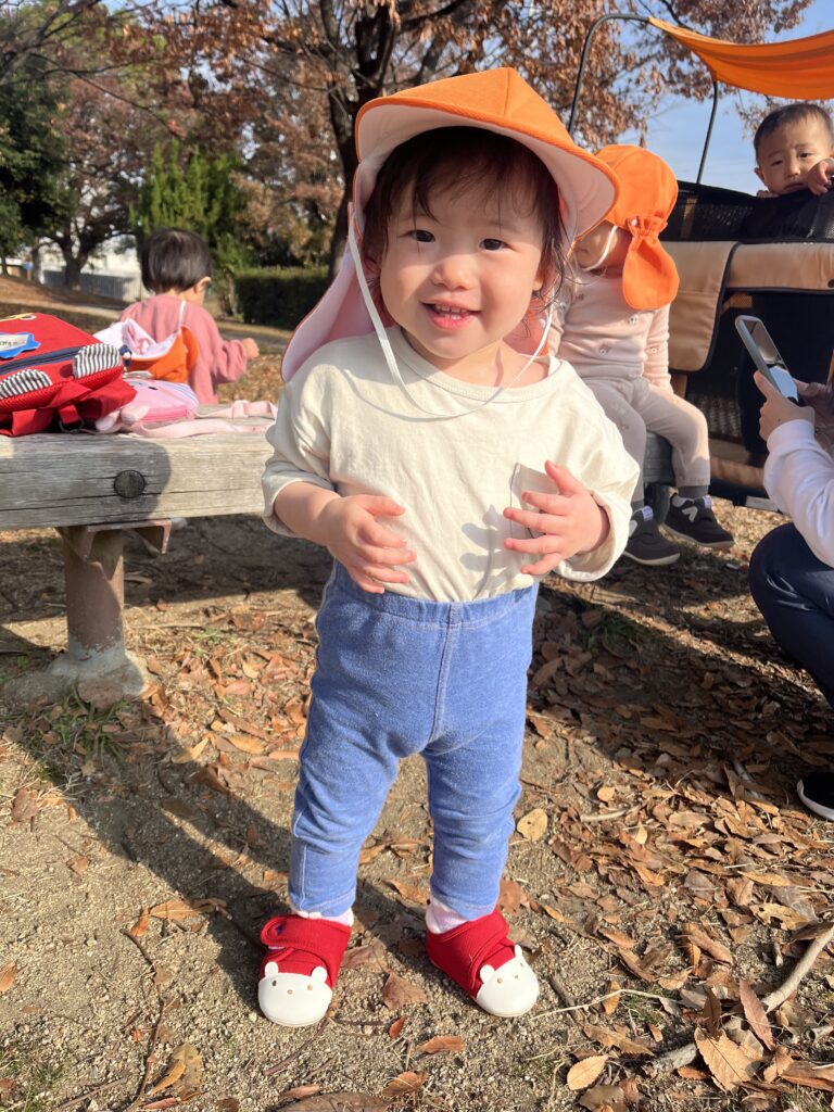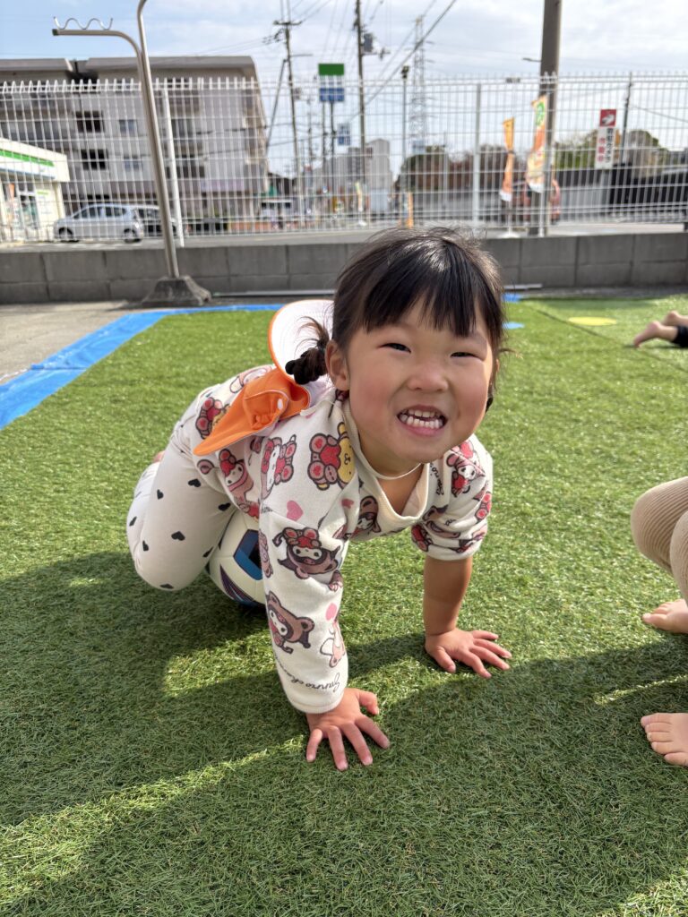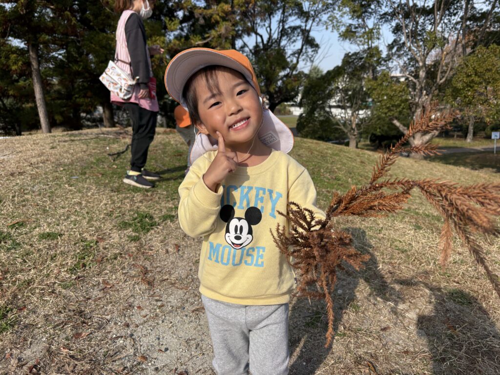 今日もくま組さんに手をつないでもらい金岡公園に行きました。丘の登り降りを楽しんだり丘の上からかけおりたりと元気いっぱい遊びました。