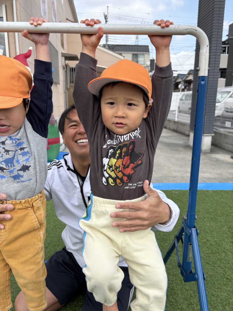 ハードルを使ったリレーや鉄棒、ボール遊びなどどの運動も楽しんで取り組んでいた子どもたちでした。