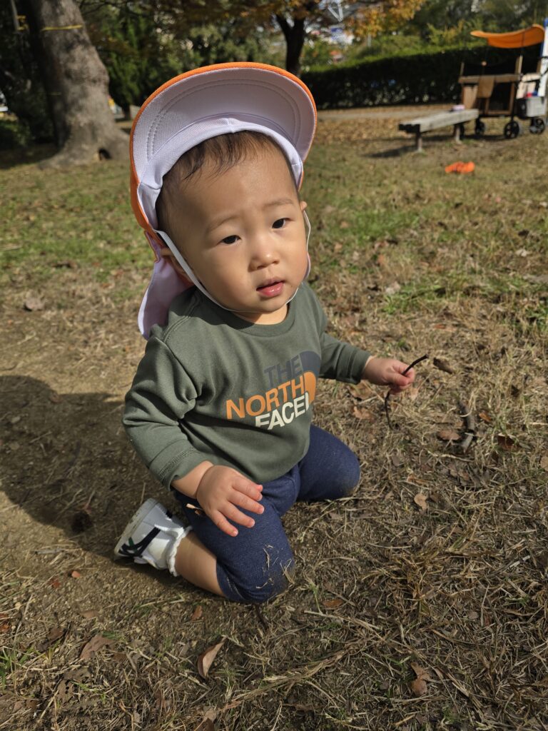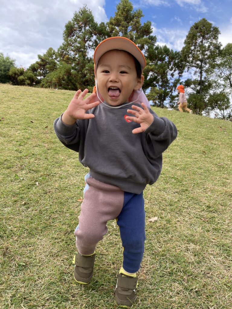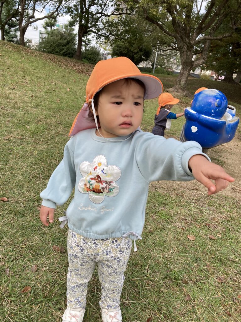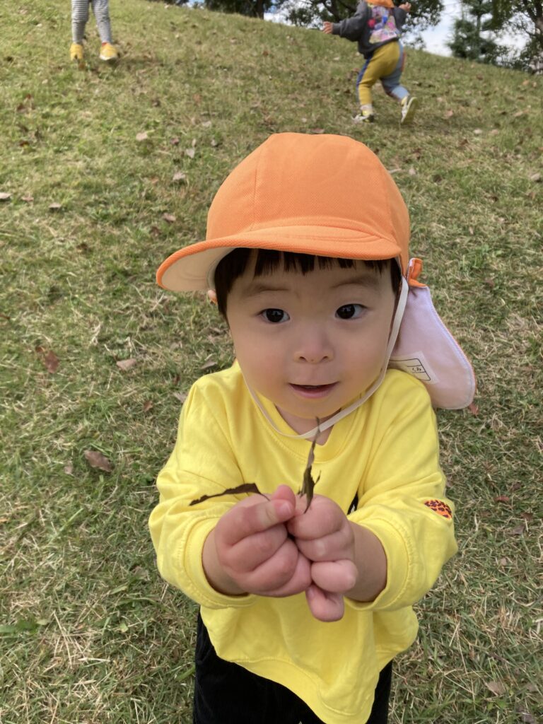 追いかけっこしたり、葉っぱや木の実を拾ったり、秋の公園遊びを楽しみました。