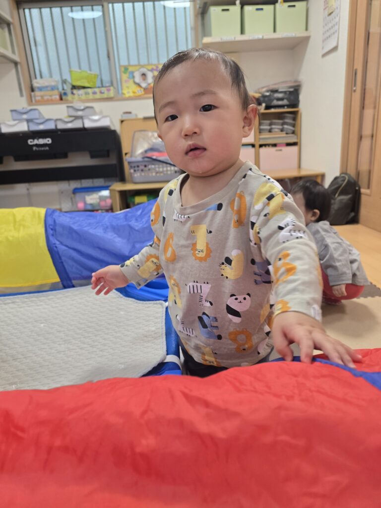 今日はお部屋でトンネルをしました。
