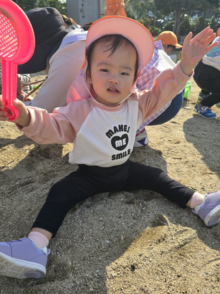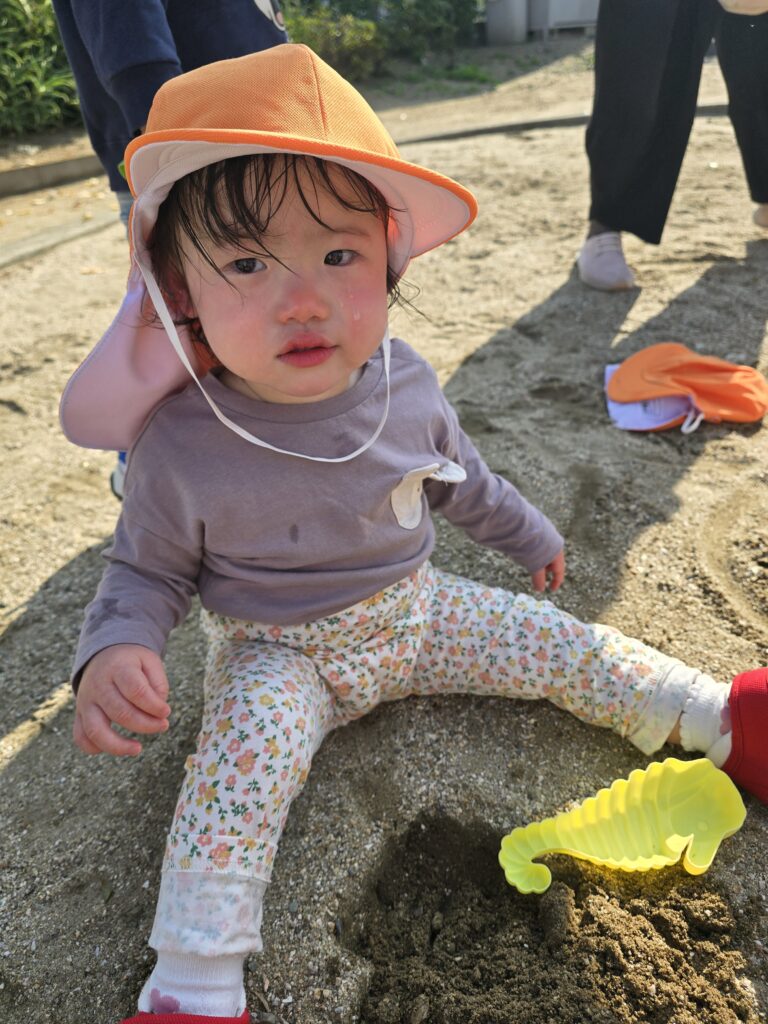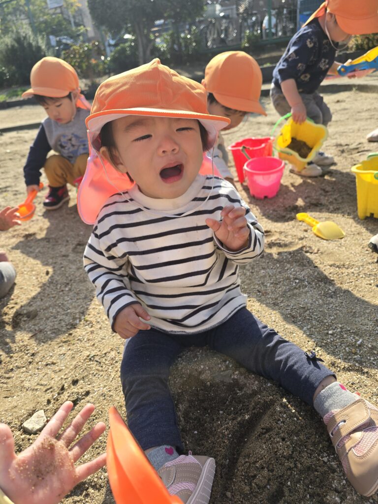 初めてのお砂場に泣いてしまうお友だちもいましたが、バケツやスコップを持って遊ぶ姿もありました。