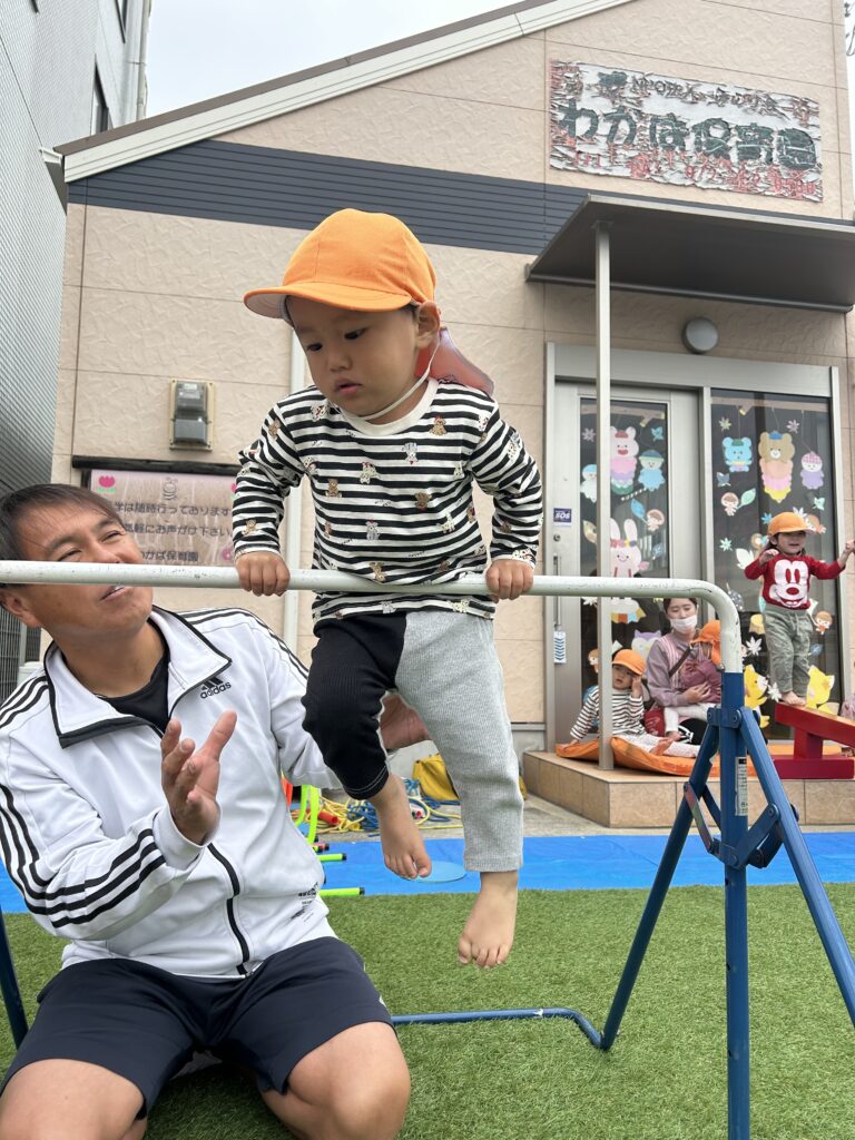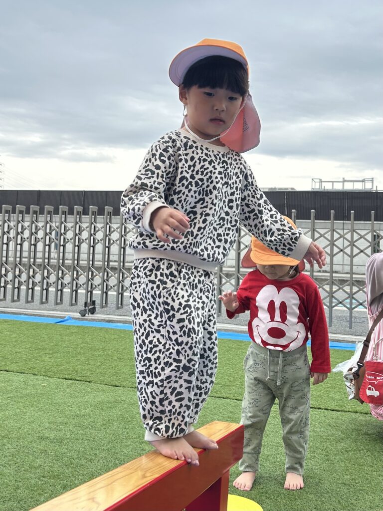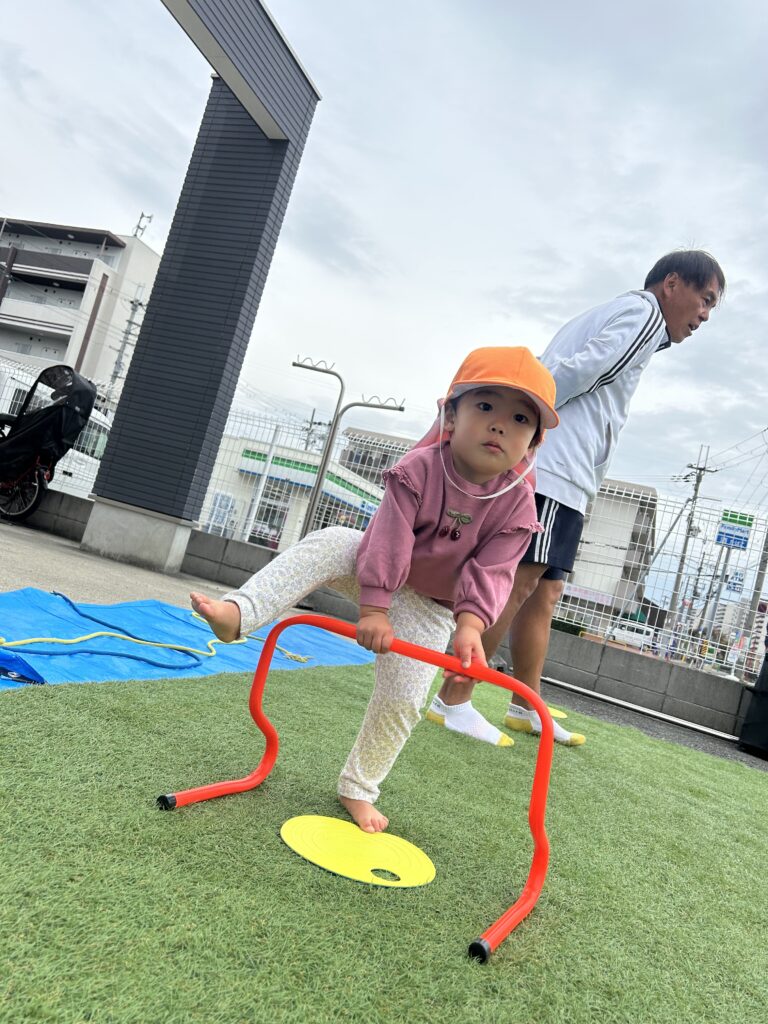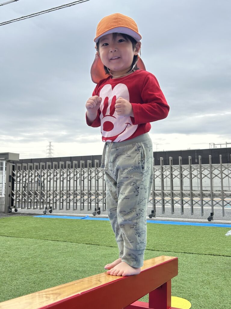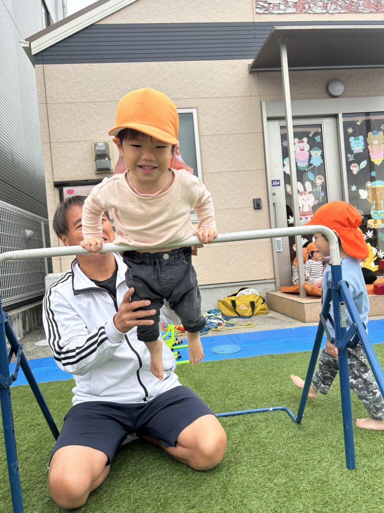 みんな体操教室が大好きですごくいい顔で参加しています。初めてのハードルを使いました。またぐのに一生懸命足を上げたり鉄棒や平均台でも新しいことに挑戦しました。