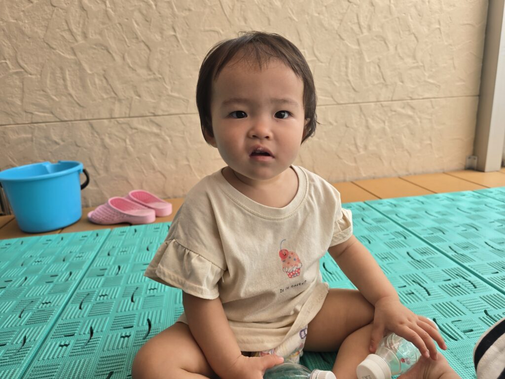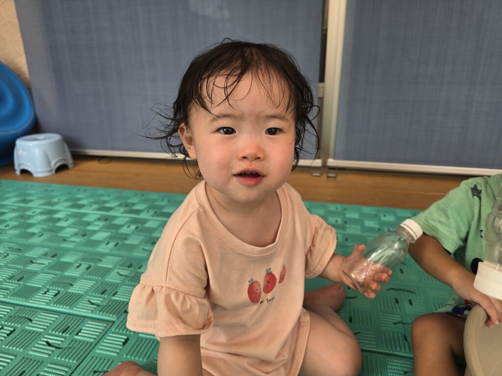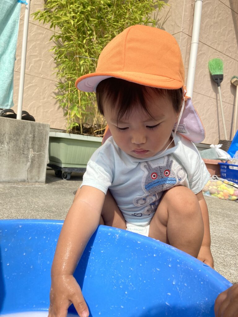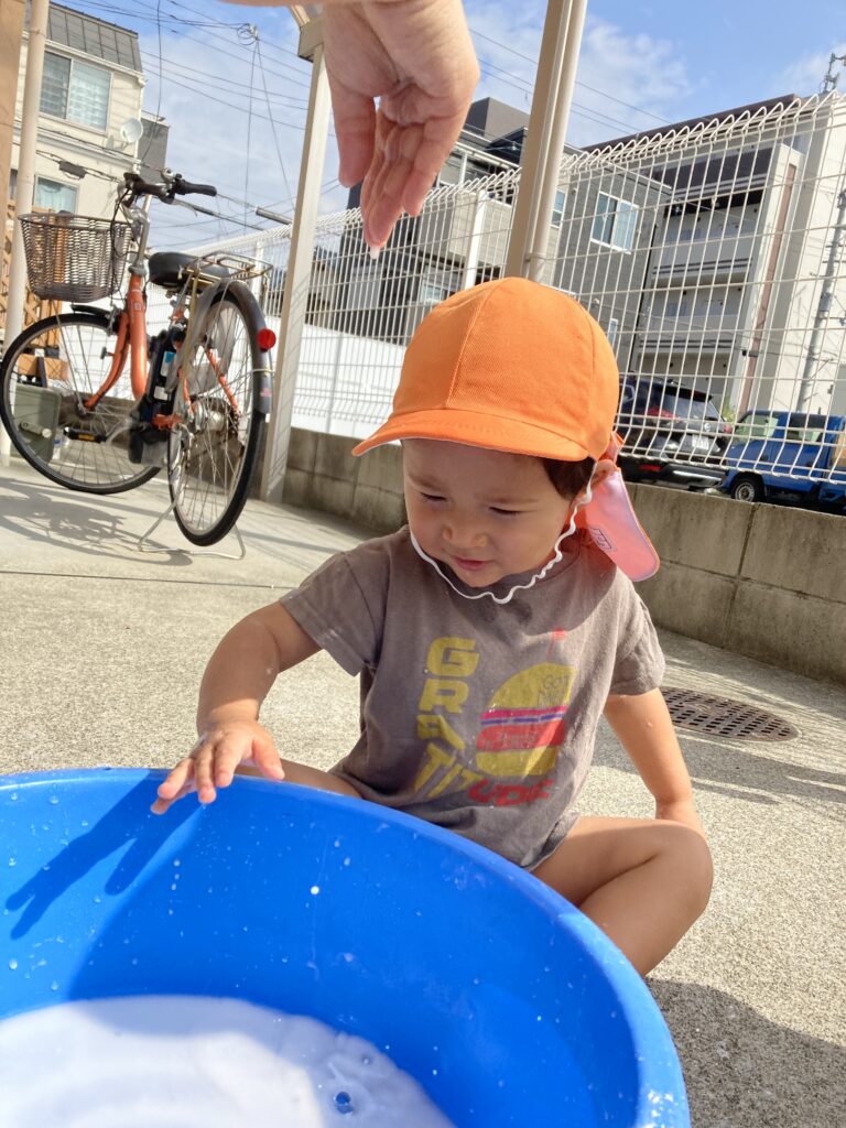 ホースの水を触ったり、洗面器の水を触ったりとても喜んでいました。
