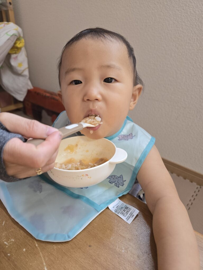 片栗粉にお水を入れ、さらさらだった感触からドロドロとした感触に変化するのを興味津々に楽しんでいました。