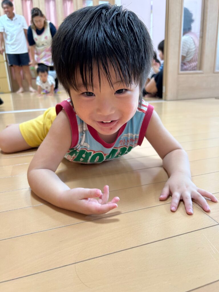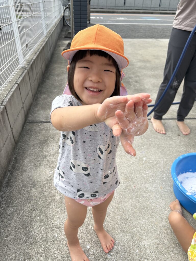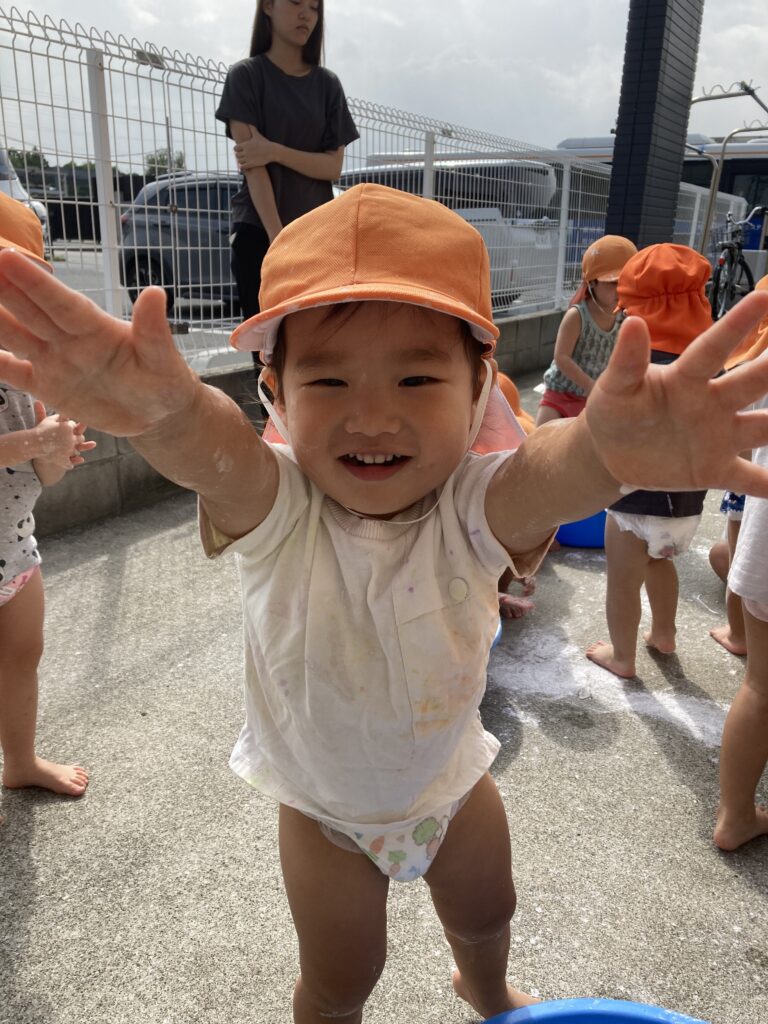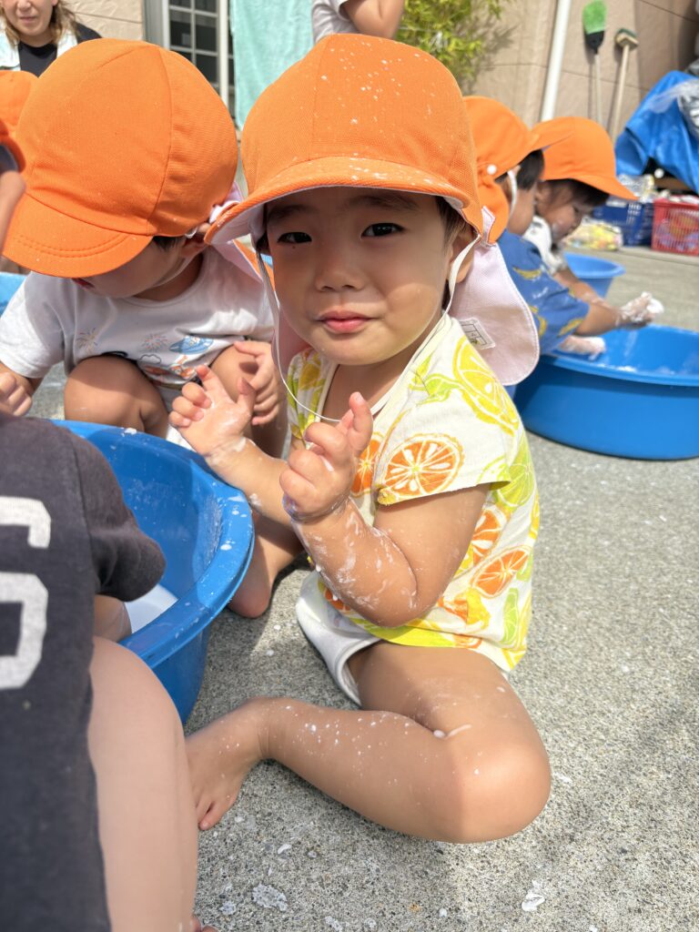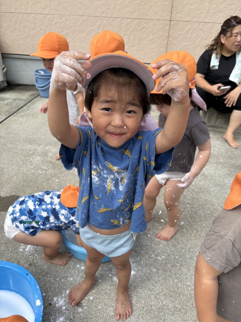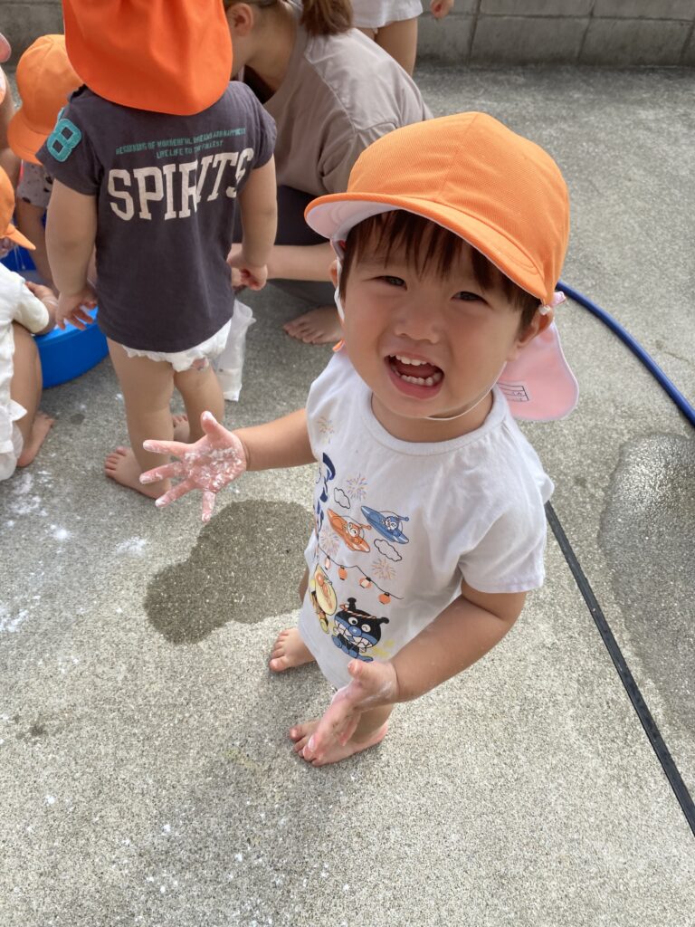 ぷにぷにの水風船を掴んだり、ギュッと握って割ってみたりと、それぞれに感触を楽しんでいたうさぎ組さんでした!