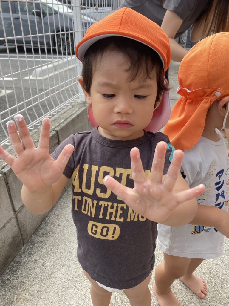 わかばアルバム2025/09/26 くま組 片栗粉遊び
